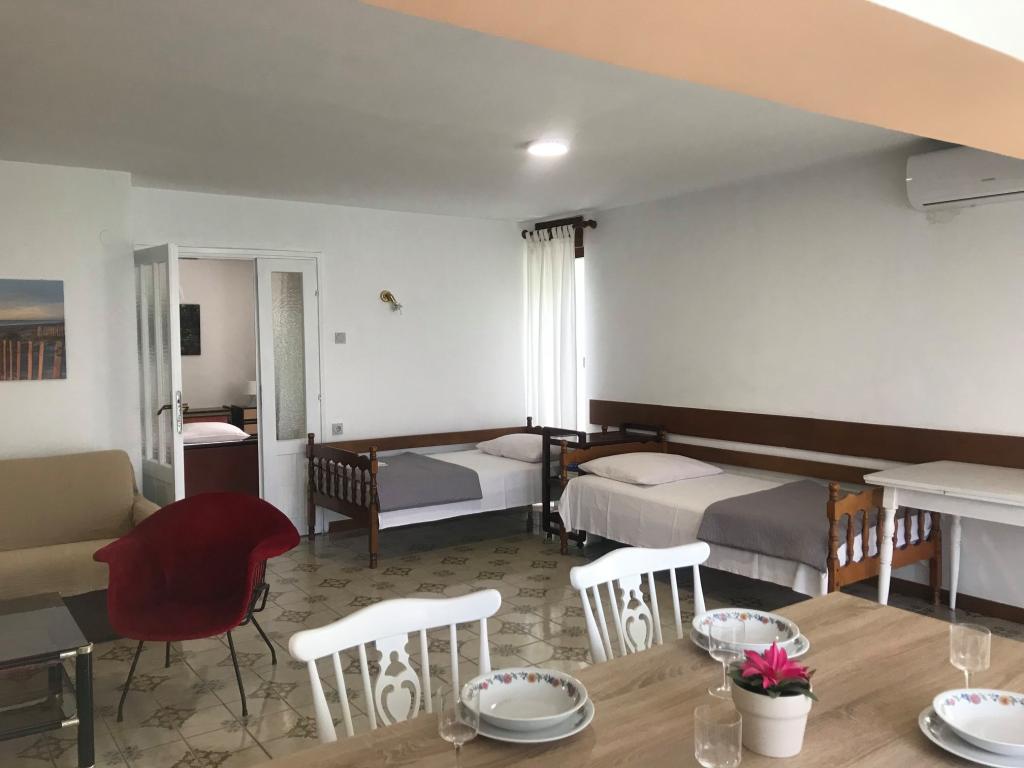A Petrak Apartmanok egy különálló családi házban találhatók, két apartmannal, mindegyik saját emeleten, ami biztosítja az egyes apartmanok használóinak a magánéletet. A házat kerítés veszi körül, amely a kertet belső udvarral és ingyenes parkolási lehetőséggel zárja le, összesen 4 autó számára az utcai oldalon, valamint egy bekerített kerttel a ház mögött. Lehetőség van a teljes ház bérlésére (mindkét apartman egyszerre), ami különösen kényelmes két vagy három együtt nyaraló család számára. A ház Malinska központjától kb. 250 méterre, a városi strandtól pedig kb. 300 méterre található. A bolt és a benzinkút kb. 150 méterre található, akárcsak a legközelebbi étterem. A grillező a ház udvarán található, és mindkét apartman közösen használja. Az apartmanokban ingyenes Wi-Fi és műholdas TV található. Mindkét apartmanban légkondicionáló található a hűtés és a fűtés érdekében.