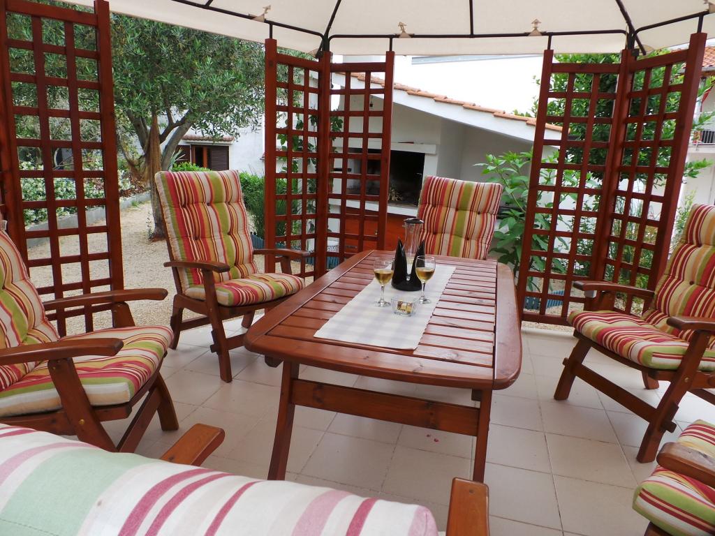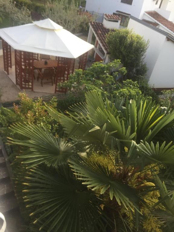 Kilátás a kertre és a pavilonra, ahol az esti vendégek diszkrét világítással és virágokkal teli romantikus környezetet élvezhetnek egy pohár jó borral és grillezett finomságokkal. A helyi halkülönlegességek illata a közeli halétteremből / 200 méterre a lakástól /. További lehetőségek a közelben: bowling, lovaglás, különféle vízi sportok, kerékpárkölcsönzés, csónakok, szervezett kirándulások, hosszú és gyönyörű sétányok a hely adta lehetőségek.