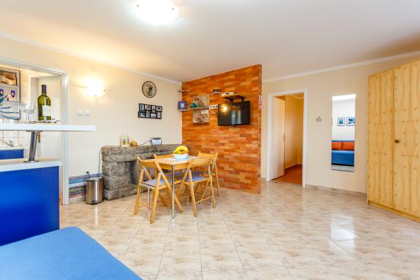 Egy apartman, amely szebb volt a valóságban, mint a képeken. Szépen felújított apartman várt minket, kimondottan kedves, szeretetteljes házigazdákkal (köszönjük a bekészített üveg bort is. Tágas jó elrendezésű, 5 személy számára több, mint elegendő mérettel. A terasz ... Csodálatos kilátás ... és a naplementék ... gyönyörűek voltak! A tenger közel van (szerintem nincs 100m). Nagyon jókat sétáltunk a kiépített parton. A változatos parton a fürdés is remek volt. Jól éreztük magunkat minden szempontból. Köszönet a házigazdáknak kedvességükért, mosolyukért. Érdekes látvány volt a gazdagon termő kiwi lugas az udvaron. Ez a legnagyobb apartman a házban, egy teljes szint. A konyha igényes, nagyon jól felszerelt. Öt ember számára a két WC is jó dolog volt. Köszönjük! Jó szívvel ajánljuk ezt a helyet.