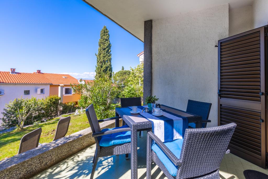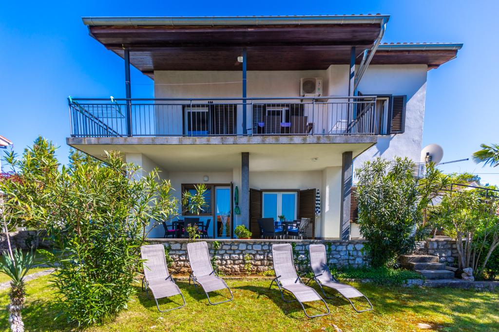 Két jól felszerelt és berendezett apartman egy ház földszintjén Malinska csendes részén, biztonságos félig fedett parkolóval, tengerre néző fedett terasszal, mediterrán növényzettel rendelkező parkosított kerttel, kerti grillezővel. Az apartmanok légkondicionáltak, LCD SAT TV-vel, Wi-Fi internettel felszereltek. Felszerelt konyhák - mikrohullámú sütő, filteres kávéfőző, kenyérpirító, mosogatógép.