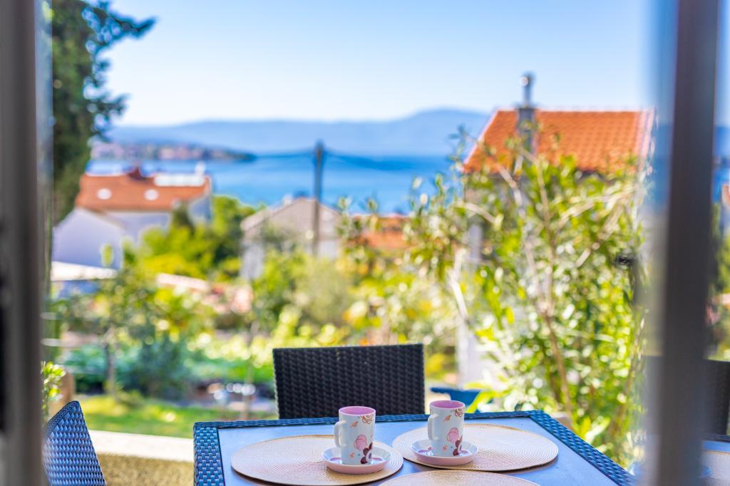 Köszönöm kedves Vlatka és Damir a csodálatos vendégszeretetet a kedves helyen. Nagyon élveztük az apartmanban (A2+1) való tartózkodást! Az apartman 3 fő elszállásolására alkalmas. Frissen felújított és szuper tiszta. Tetszett a szoba elrendezése és a dekoráció minden szép részlettel. Reggel a teraszon fogyasztottuk el a kávénkat, a gyönyörű kilátással és a lenyűgöző éjszakai naplementékkel. Ott teljesen békés a légkör, hogy lenyugodjunk a rutintól. Minden ágynemű és törölköző szuper tiszta és illatos volt. A konyha nagyon jól felszerelt: nagy hűtőszekrény, sütő és mosogatógép. Az apartman elhelyezkedése nagyon kényelmes: az egyik két perc sétára található a tenger mellett. Tegyen egy sétát balra, hogy elérje Porat, jobbra pedig Malinskába a part mentén. Minden egyben csodálatos időnk volt!