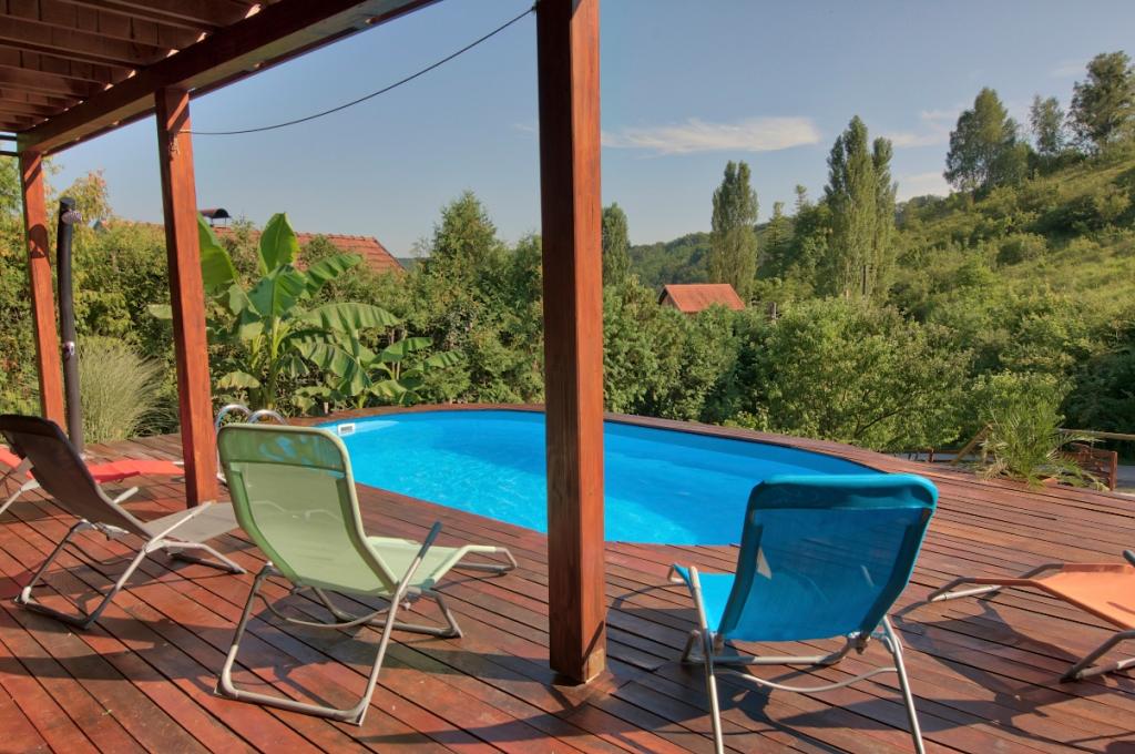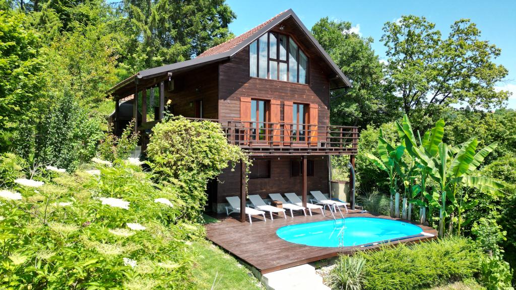 A FeelGood nyaralóház Zágráb központjától mindössze 30 percre kínál nyaralást a természetben. Erdővel körülvéve, de teljesen bekerített. A bekerített telek ideális háziállatokkal való nyaralásra, állatbarát lehetőséggel. A medence áprilistól augusztusig használható. Grillező, vízforraló és tűzrakóhely is rendelkezésre áll. Nyársak is elhelyezhetők. A téli hónapokban a ház teljes komfortot biztosít a padlófűtésnek, fűtési lehetőséggel ellátott klímának és a klasszikus fatüzelésű kandallónak köszönhetően a teljes hangulatért. A ház klasszikus felépítésű, fa homlokzata szellőztetett a kabin érzetéért. Aszfaltozott út vezet a házhoz, parkolási lehetőség az épülethez tartozik, mely a további biztonság érdekében videóval megfigyelt autóbeállóval rendelkezik. Klasszikus WiFi a létesítményen belül található, 2023 nyarától pedig uniós forrásból épül ki az optikai hálózat infrastruktúrája, amelyhez csatlakozásra lehet számítani.
