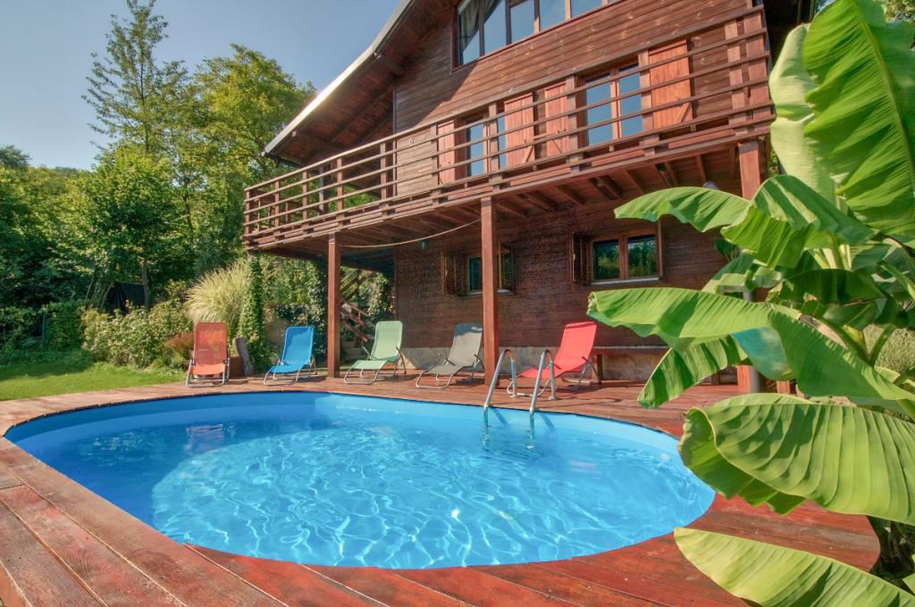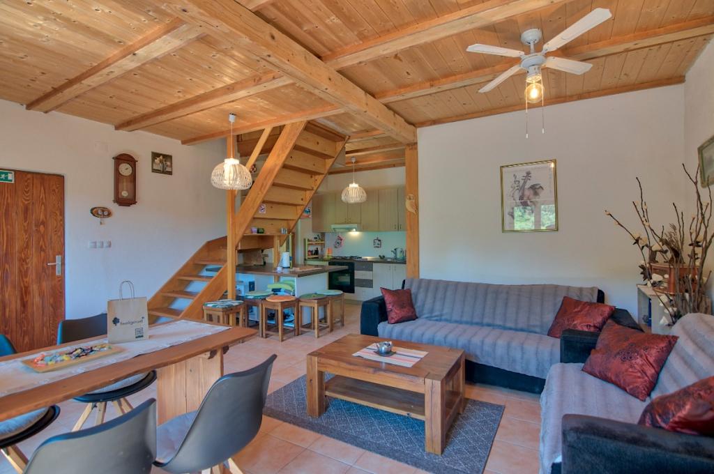 Tovább Kevesebb képekMeg kell jegyezni, hogy a ház dombos területen található, ahol a meredek terep és a lépcsők miatt a kerekesszékes megközelítés nehézkes. Ezenkívül az épület első emeletére vezető lépcső meredek. A ház a természetben található, és a magas szintű higiénia, a részletes takarítás és a kártevőirtás ellenére nem lehet elkerülni a rovarokkal való érintkezést, különösen a teraszon és a medencében. Kérjük a vendégeket, hogy ezt vegyék figyelembe foglaláskor, és hogy mi vagyunk az utolsó ház az erdőben, és ennek megfelelően tervezzék meg érkezésüket. Bejelentkezés 16:00-tól, kijelentkezés 10:00-ig. Felár ellenében lehetőség van az érkezési vagy távozási idő meghosszabbítására. A foglalás előlegének összege a tartózkodás összegének 50%-a. A teljes árat érkezés előtt ki kell fizetni.