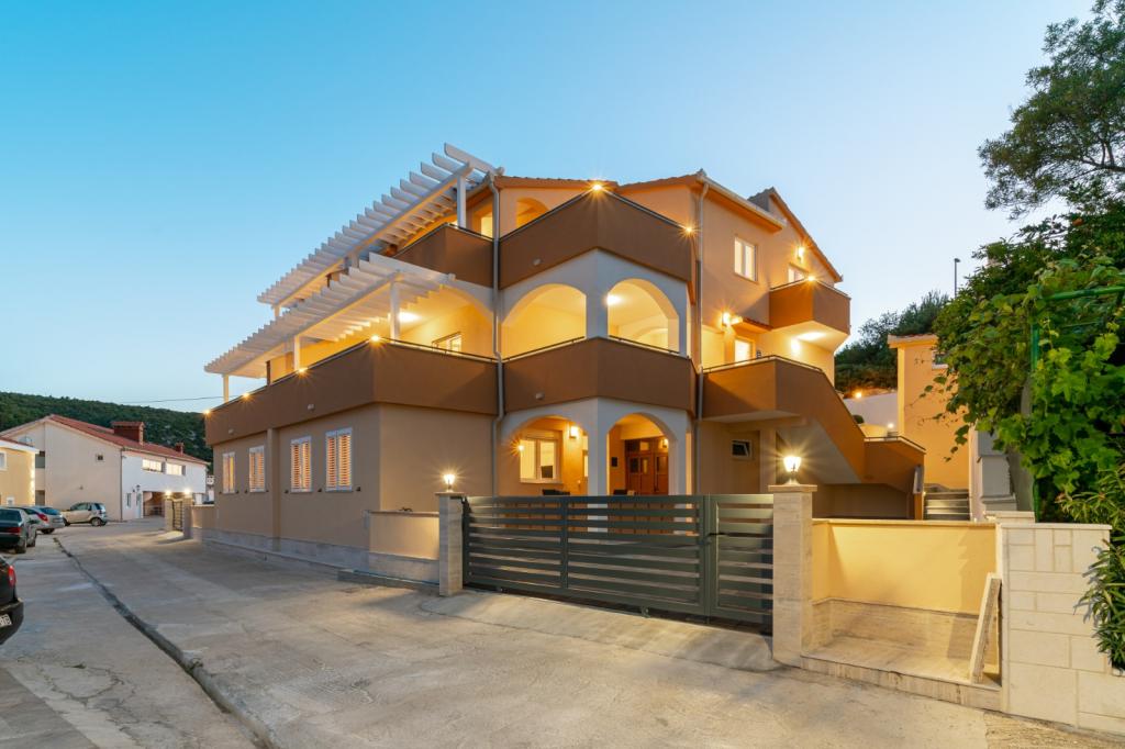 A Villa A egy gyönyörű villa egy csendes helyen, Marina közelében, Trogir közelében. 6 apartmanból, úszómedencéből, szabadtéri grillből, saját parkolóból áll. A strandtól 70 méterre, a központtól pedig 500 méterre található.