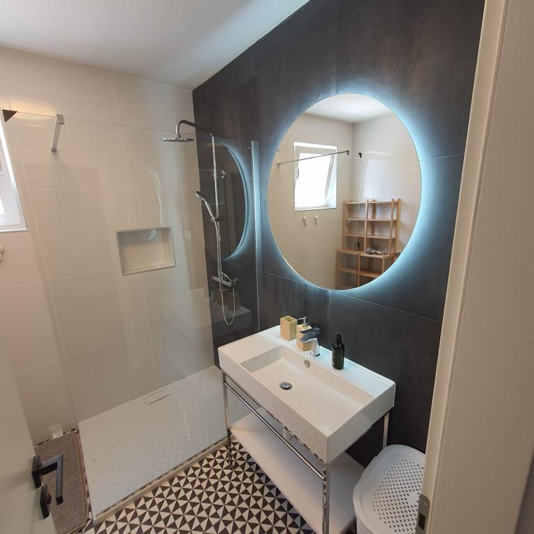 Kiváló elhelyezkedés a tenger mellett, megfelelő stranddal gyerekeknek és felnőtteknek. Kiváló árnyékos lakás, gyönyörű terasszal, modern, teljesen felszerelt konyhával és tágas zuhanyzós fürdőszobával. Kiváló tulajdonos, aki ízletes meglepetésekkel is szolgált (szeletek, italok, sült hal). határozottan ajánlom.