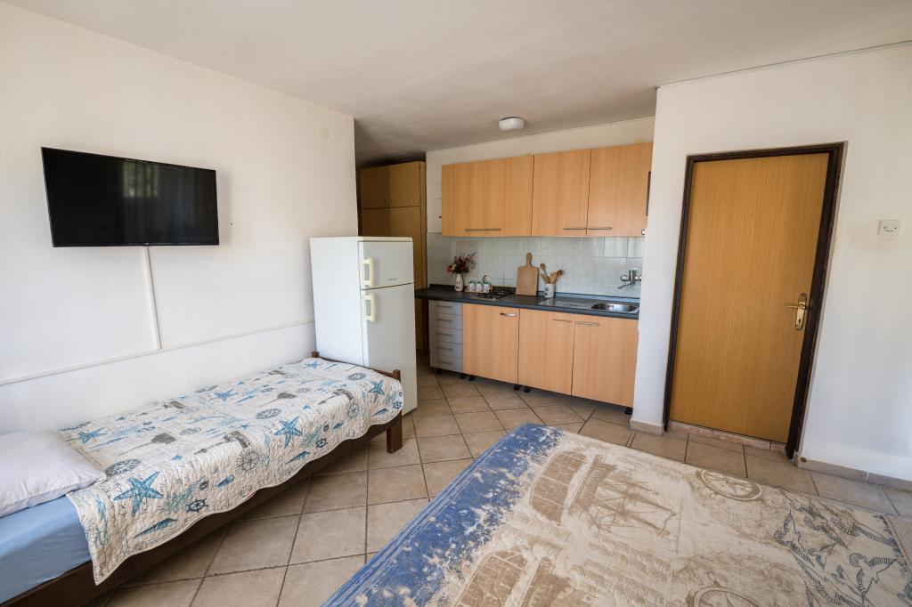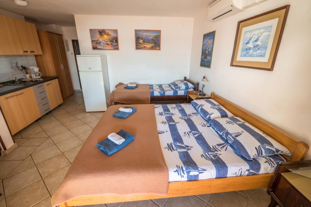 Miholašćica városának gyökerei az ókori római időkre nyúlnak vissza. A Cres-part legszelídebb részén található, egy délnyugatra nyíló tágas öböl mellett. A gyönyörűen parkosított Miholašćica és a szomszédos, mediterrán növényzettel rendelkező Martinšćica városa a családi és kempingturizmusra irányul. Ma Miholašćica turisztikai hely, ahol a Žeča-szigetre néző kilátással elkerülheti a tömeget, és nyugodt környezetben találhatja meg nyaralását. A gyönyörű strandok mellett az érintetlen természet remek lehetőségeket kínál a minőségi és aktív tartózkodáshoz, nyaraláshoz. Az Apartments Villa Goga épülete Miholašćica központjában található, mindössze 5 perc sétára a strandtól. A 300 m-es vagy 10 perces sétával elérhető kerületben 2 étterem, szupermarket és utazási iroda található. A kavicsos természetes strand és a tiszta tenger felejthetetlen élményt nyújt kicsiknek, és pótolhatatlan pihenést a felnőtteknek. Közvetlenül a tengerparton van egy bár, ahol egy hideg itallal hűsítheti le magát, vagy fagylalttal szórakoztathatja a gyerekeket a széles választékból.