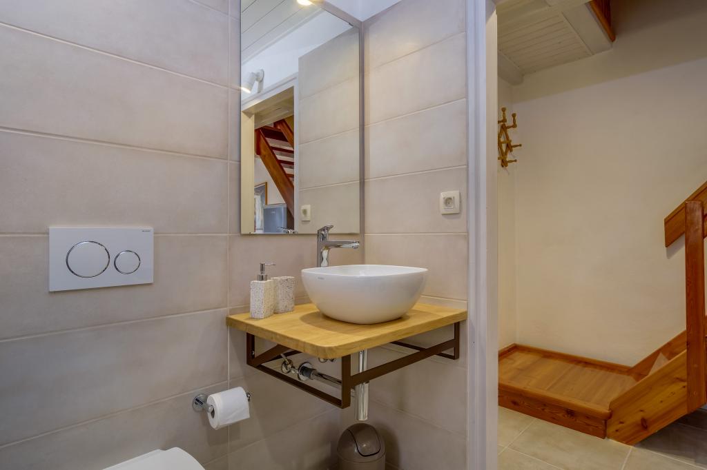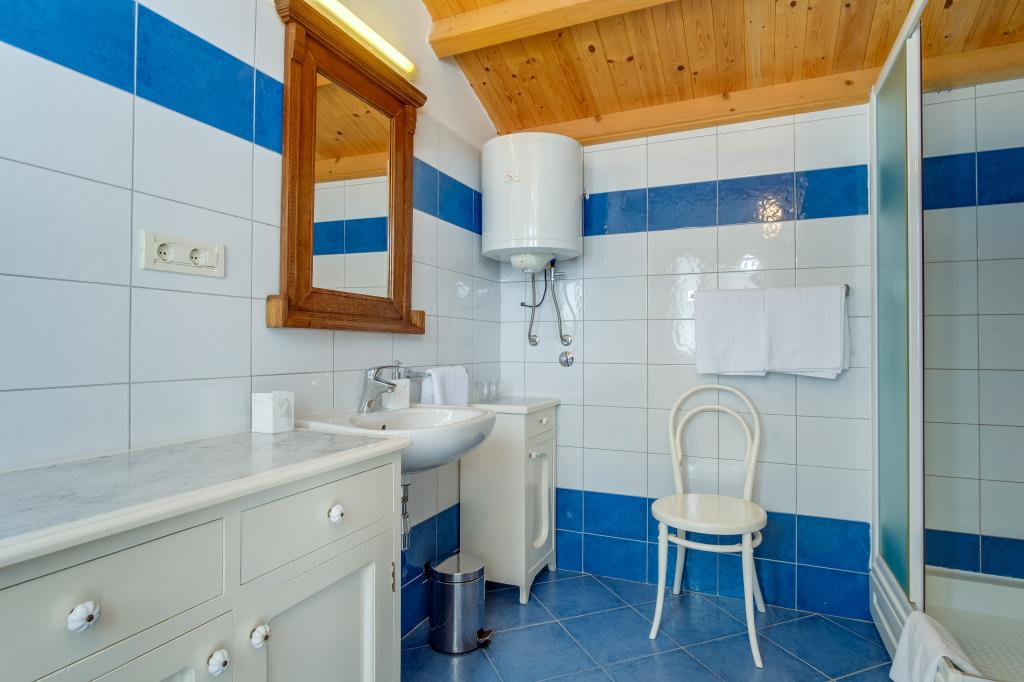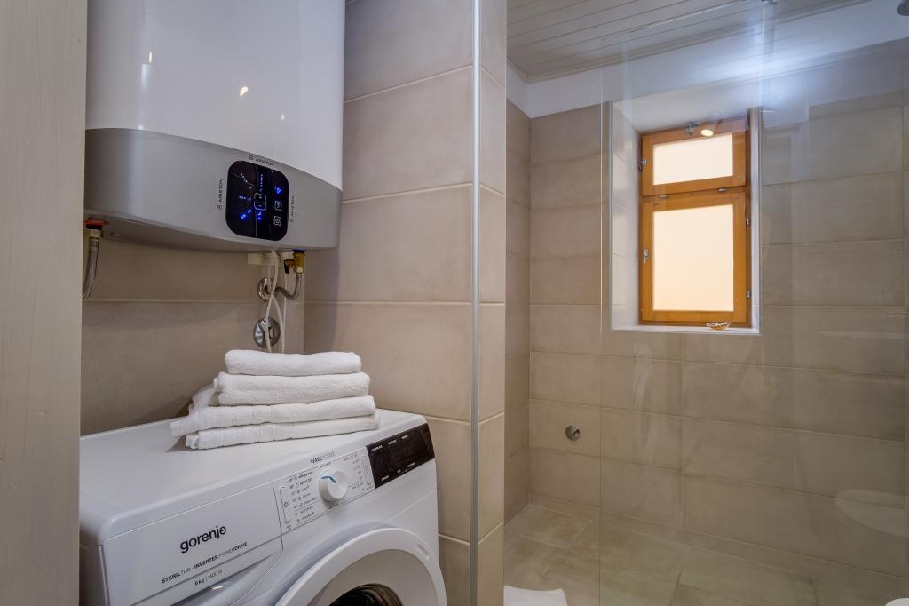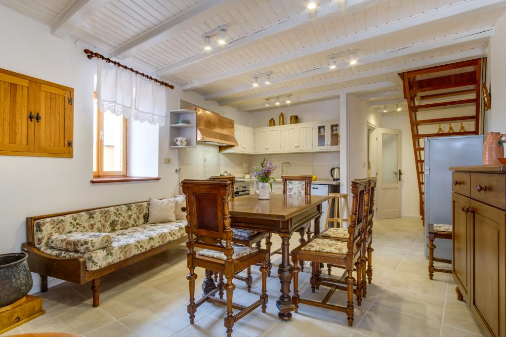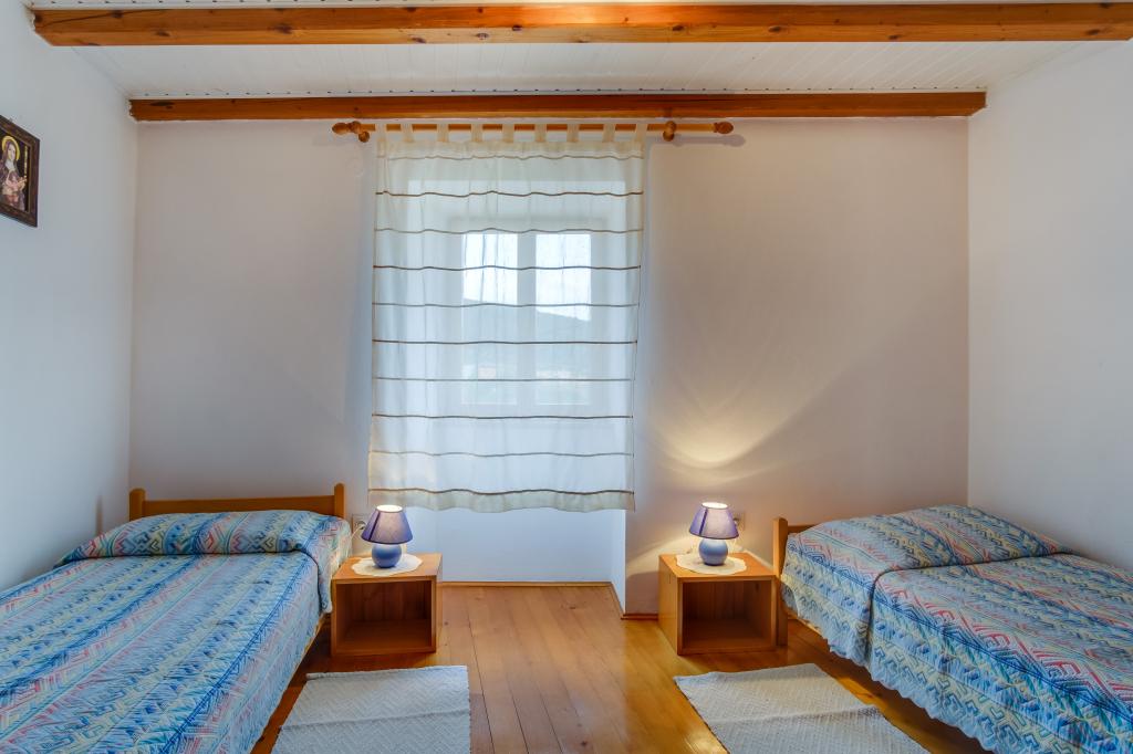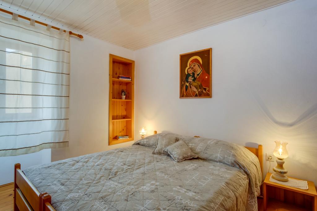 Eredeti szigeti kőház **** (86 m2), felújított, kézzel készített bútorokkal berendezett, ideális családi nyaraláshoz, de romantikus két fős nyaraláshoz is. A ház 3 szintes: földszint (teljesen felszerelt konyha mosogatógéppel, nagy hűtőszekrény fagyasztóval, Nespresso és filteres kávéfőző, sütő és padlófűtés, fürdőszoba mosógéppel és padlófűtés és nappali SMART SAT TV-vel), első emelet (2 hálószoba, az egyik franciaággyal, a másik két egyszemélyes ággyal) és tetőtér - tetőterasz gyönyörű kilátással a tengerre, egy kétágyas szoba légkondicionálóval és fürdőszobával. Minden szoba a tengerre néz. A vendégek rendelkezésére áll egy kert grillezővel és egy olajfaliget nyugágyakkal, kilátással a tengerre. Saját parkoló 2 autó számára 50 m-re található a háztól és az út mellett található. Egy nagyon szép kavicsos strand mindössze 80 m-re található a háztól. Internet A WiFi minden szobában, beleértve a tetőteraszt is, ingyenesen áll a vendégek rendelkezésére.