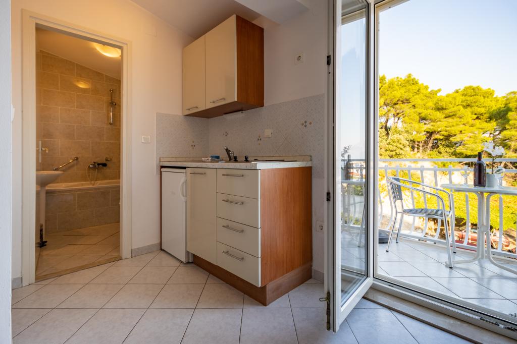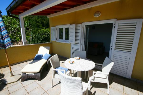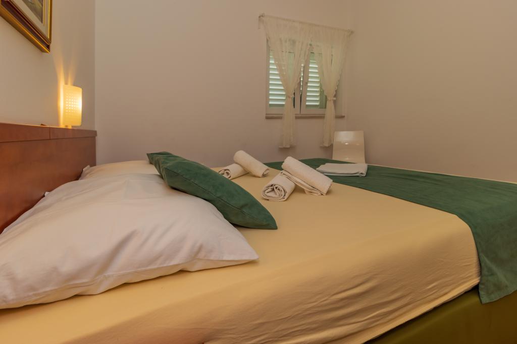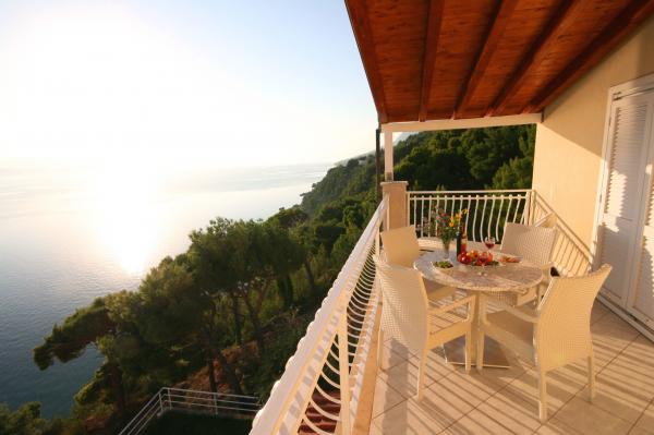 A Villa Mandolina közvetlenül a strand felett található, egy csendes öböl szélén, és minden apartmanhoz terasz tartozik, ahonnan gyönyörű kilátás nyílik a tengerre és a közeli szigetekre. Mindegyikhez modern felszereltségű konyha, fürdőszoba, ingyenes WIFI internet, műholdas TV, légkondicionáló, zuhanyzó, törölközők és ágynemű, nappali kanapéággyal és étkező tartozik. A villában három 4 típusú apartman található, és az árak a mérettől és a villán belüli elhelyezkedéstől függően változnak. Vendégünkként használhatja a gyönyörű strandot (grillezés a strandon és a villában, két nyugágy apartmanonként ingyenesen a villában való tartózkodás végéig, napernyők, zuhanyzó a strandon) és a videó megfigyelt parkolót, mindezt ingyenesen!! A strandra lépcsőn keresztül lehet eljutni közvetlenül a villából.