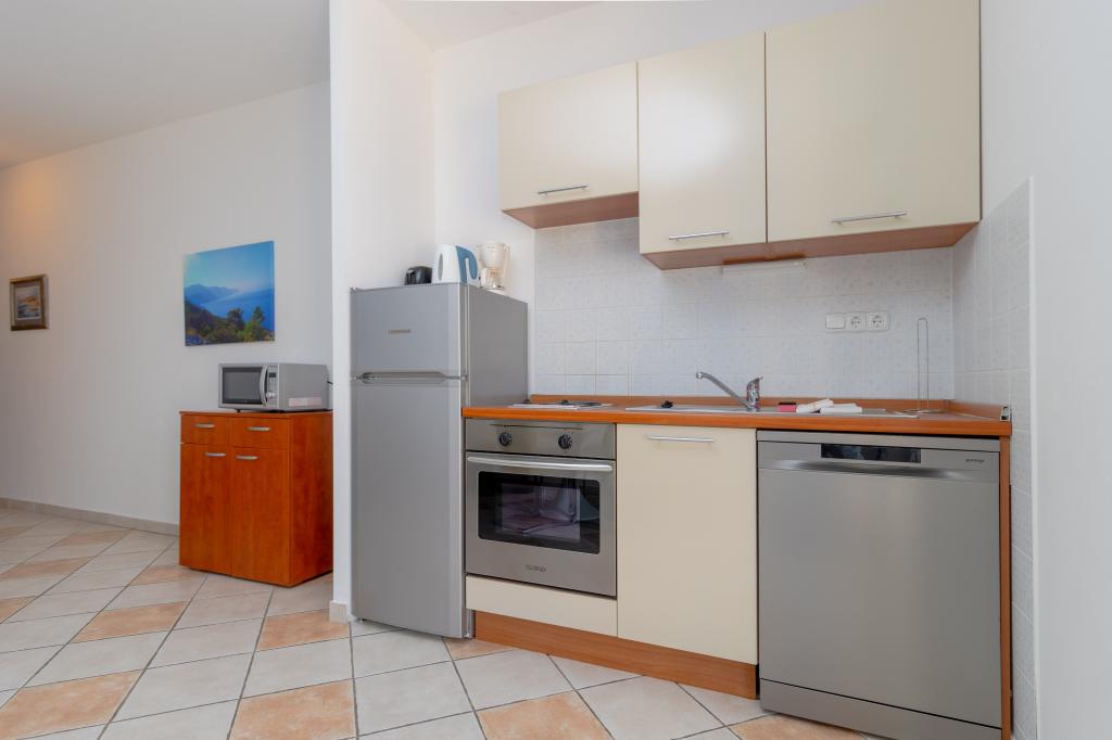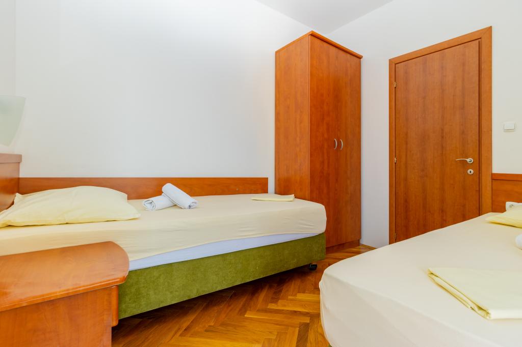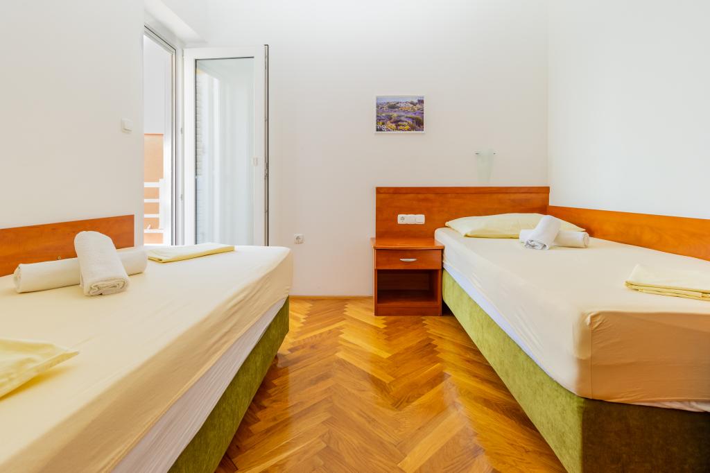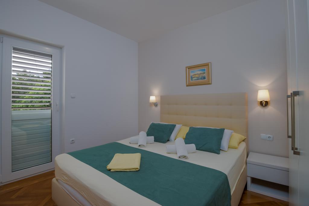 A végtelenített medencével rendelkező Villa Ruzmarina közvetlenül a strand felett található, ahová saját lépcsőn keresztül lehet feljutni, és lenyűgöző kilátást nyújt a tengerre. Minden apartmanból gyönyörű kilátás nyílik a tengerre, sőt minden szobából is. Kétféle apartmantípus létezik: az egyik két szobával és nappalival, a másik pedig egy szobával és nappalival rendelkezik. Minden apartmanból hozzáférés biztosított az úszómedencéhez és a fitneszteremhez, valamint ingyenes parkolási lehetőség. A strandon az ár tartalmazza az apartmanonként két napozóágy és egy napernyő használatát.