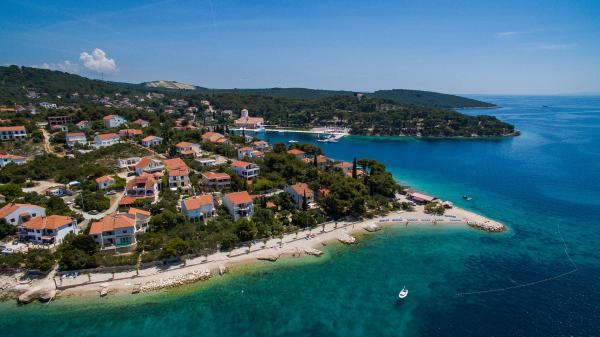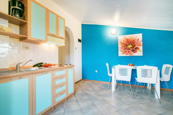 Gyönyörű családi kőház fenyvesekkel körülvéve található egy csendes részén az egyik legszebb mediterrán öbölben. Kínálunk két teljesen berendezett apartmanok alig néhány lépésre a parttól, egy keleti fekvésű, a másik irányban. Az apartmanok terasszal, kilátással a tengerre, korszerűen felszerelt, tiszta és kényelmes, mindent, amire szükség van egy rövid vagy hosszú távú tartózkodásra. Apartments Blue Paradise tökéletes a menekülés a gyors élet ma egy nyugodt és pihentető nyaralás a napfényes olajfák; kristálytiszta tenger, az érintetlen természet és a Földközi-tenger, mint valaha volt.