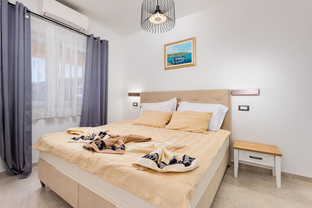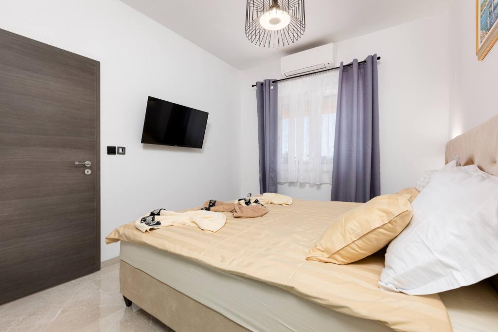 Az Apartment First Mary egy luxus és kényelmes apartman 127 m2-es max. 8 fő És tartalmaz egy konyhát, egy nappalit, egy külön WC-t mosógéppel, valamint három légkondicionált szobát saját fürdőszobával és TV/SAT-vel. Az étkező egy tágas, 60 m2-es teraszra nyílik, mely gázgrillből, borhűtőből, 10 fős asztalból, valamint kerti bútorokból áll az élvezethez és a pihenéshez, ahonnan gyönyörű, megnyugtató kilátás nyílik a tengerre. valamint szabadidős létesítmények, biliárdasztal és darts. Az Apartment Second Mary egy luxus és kényelmes apartman 80 m2-es max. 5 fő tengerre néző kilátással. Található benne egy nappali, egy konyha, egy külön WC mosógéppel, valamint két légkondicionált szoba saját fürdőszobával és TV/SAT-vel. Az apartmanhoz tartozik egy 25 m2-es saját terasz gázgrill, 6 személyes asztal, borhűtő, valamint szórakozási lehetőség, csocsó és darts.