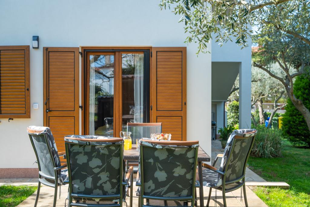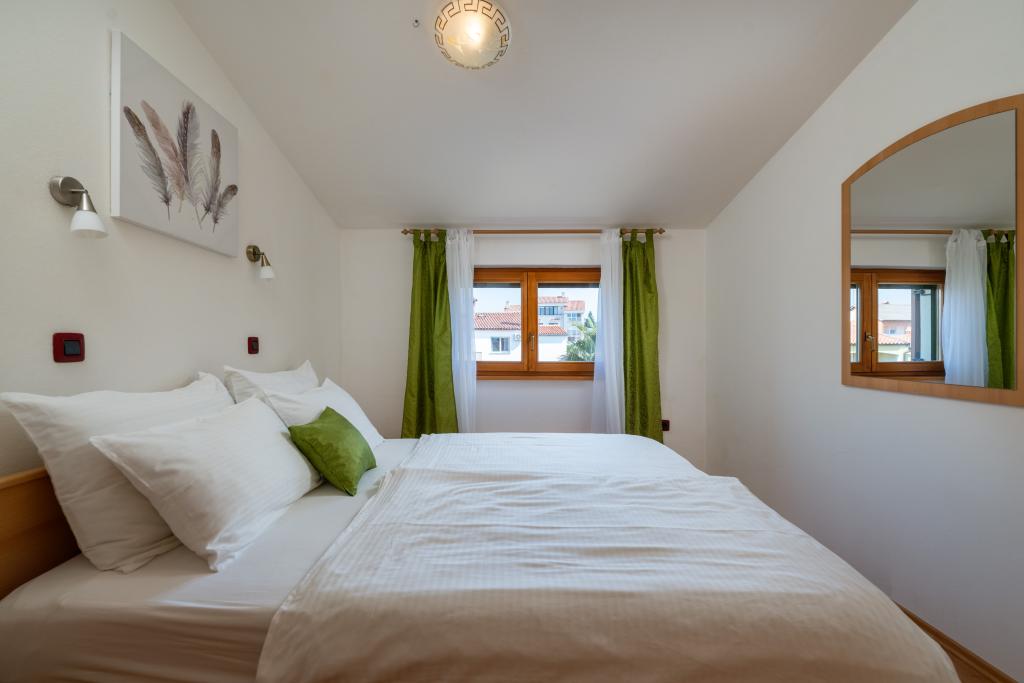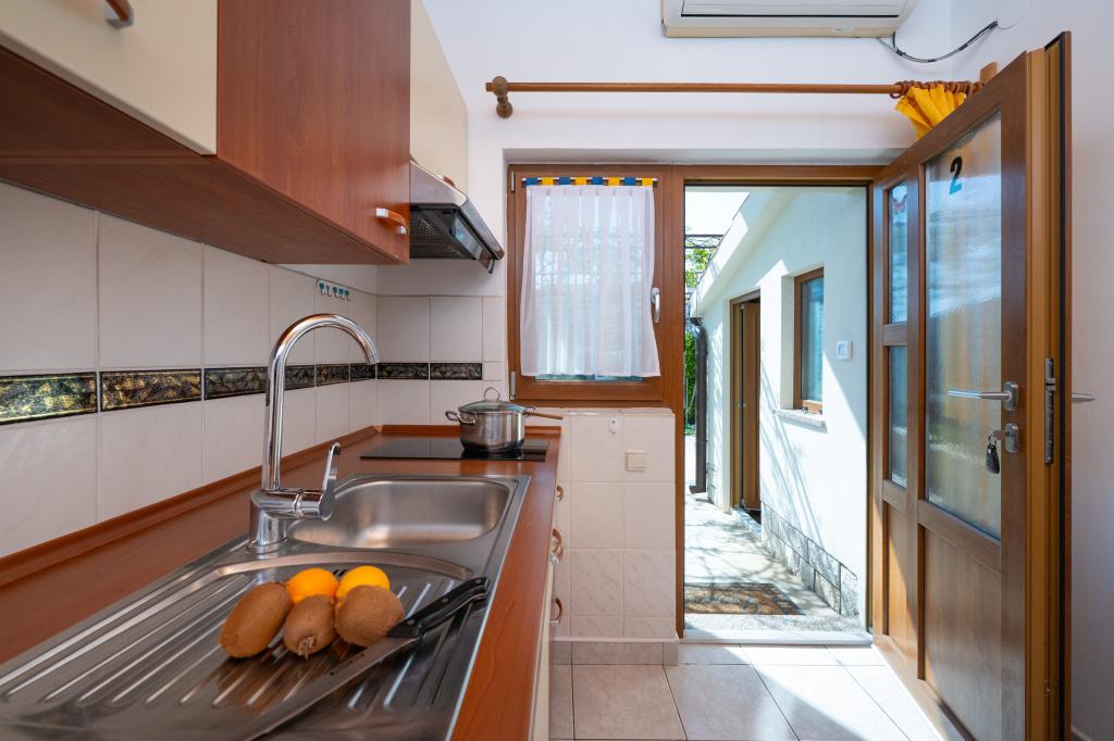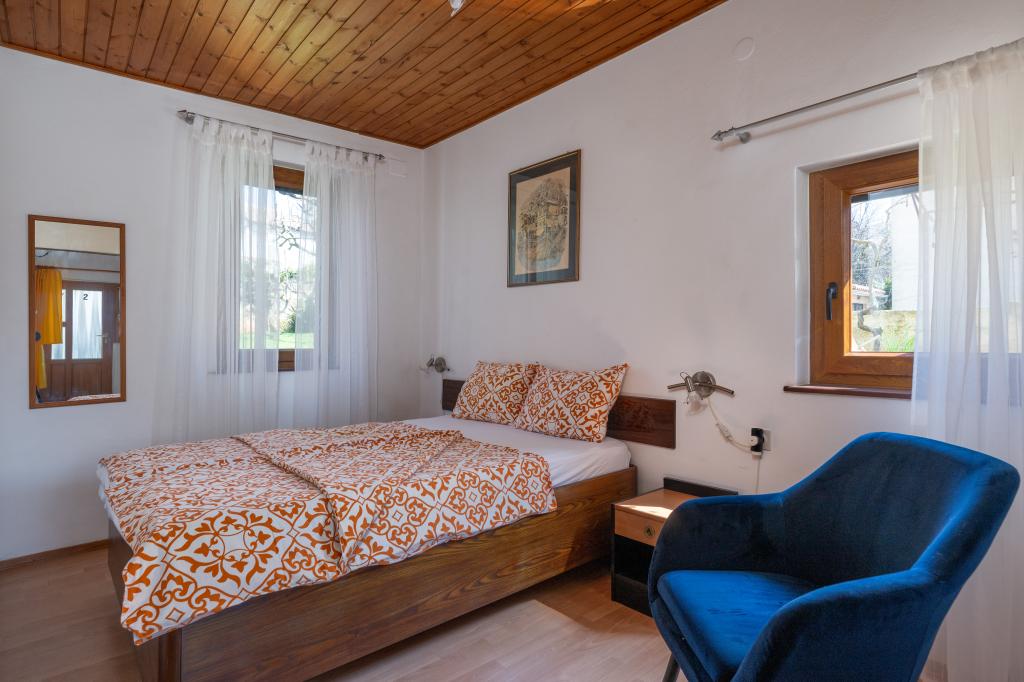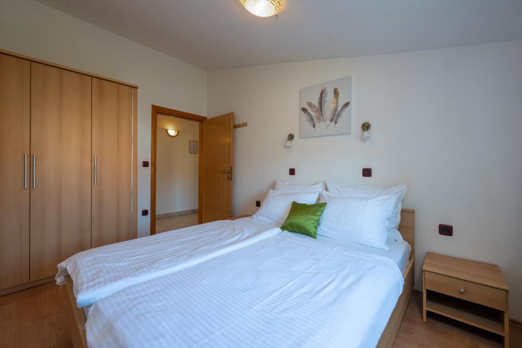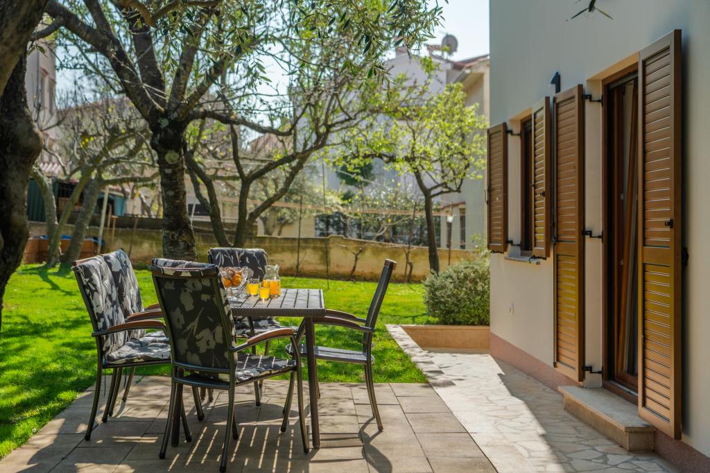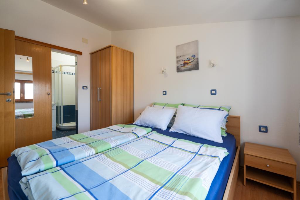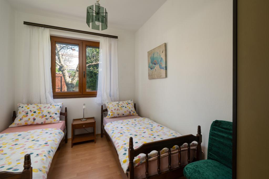 A ház Medulin csendes részén található, 250-300 méterre a strandtól, nagy kerttel és saját parkolóval. 4 apartman kiadó, teljesen és modernül felszerelt. 2 apartman a földszinten található. 1. számú apartman 2 hálószobával, konyhával, nappalival, fürdőszobával, terasszal. 2. számú apartman 1 hálószobával, konyhával, fürdőszobával, kerti terasszal. A 2. emeleten található a 3. számú apartman 2 hálószobával, konyhával, nappalival, fürdőszobával, erkéllyel. 4. számú apartman 1 hálószobával, konyhával, nappalival, fürdőszobával és erkéllyel. Minden apartman légkondicionálóval, vezeték nélküli internettel, műholdas TV-vel felszerelt. Az ár tartalmazza az ágyneműt, törölközőket, az idegenforgalmi adót és a regisztrációt. Minden apartmanhoz tartozik saját parkolóhely, kert és hordozható grillsütő. Mosógép bérlés 5 euró, pótágy 10 euró. A parkolás és az udvar videómegfigyelés alatt áll.
