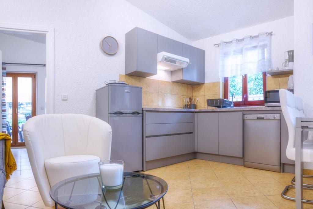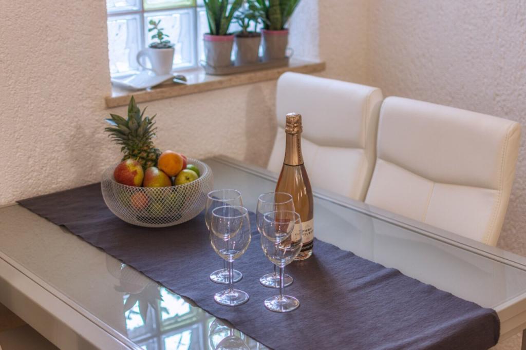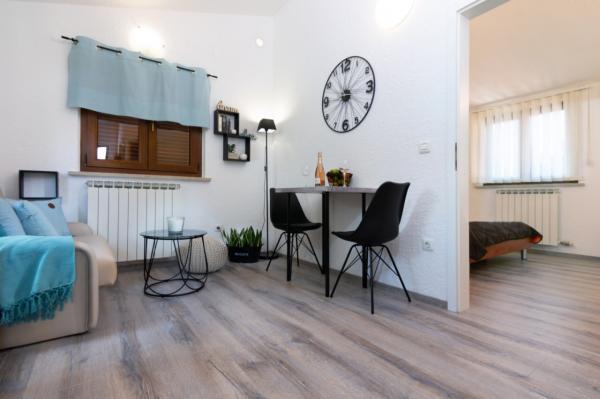 Nagyon szép, földszinti, központi, de mégis csendes lakás. A lakás teljesen felszerelt, de ha valami mégis hiányzik, a szállásadó mindig elérhető. A lakásban 2 felnőtt és 2 gyerek is könnyedén elhelyezhető, bent és a nagy teraszon is van hely játszani. Parkolás a bekerített területen lehetséges Élelmiszerbolt 1 perc sétára. Helyi étterem (Konoba Willi) az utca túloldalán. A kavicsos strand 5 perces sétával elérhető. Csak ajánlani tudom a lakást és a bérbeadót.
