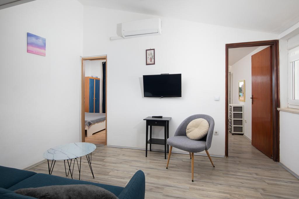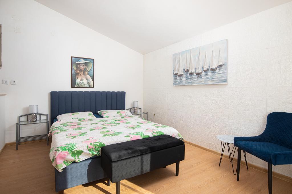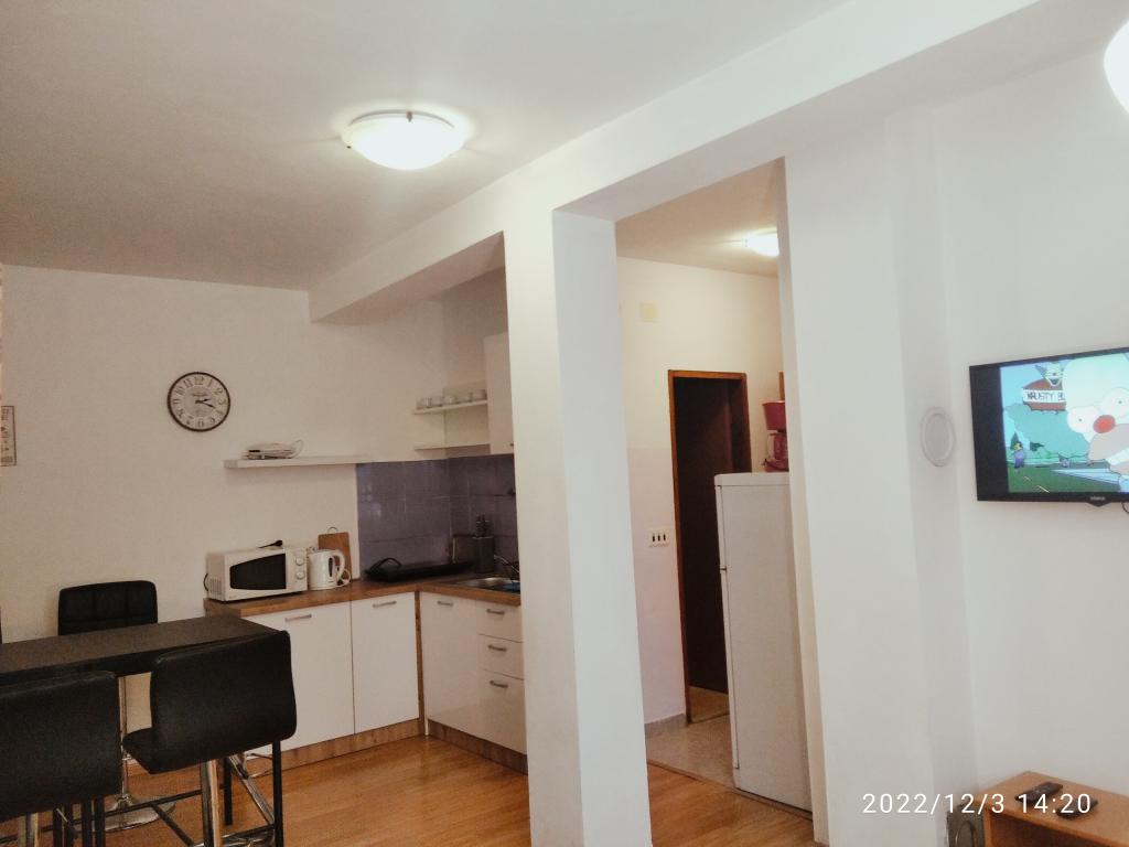 Apartmanok az 1. és a 2. emeleten 4-5 fő részére, a híres Bijeca homokos strandtól 70 méterre. Az apartmanok 2 perc sétára vannak a nyári városközponttól. Van egy kikötő, számos étterem, üzlet, szórakoztató központ a gyermekek számára, és egy gyönyörű fenyves erdő automata kempingtel.