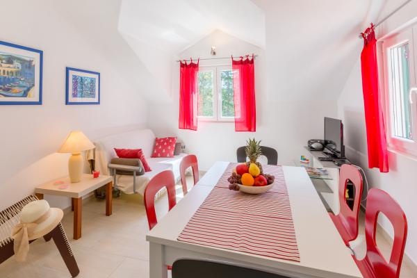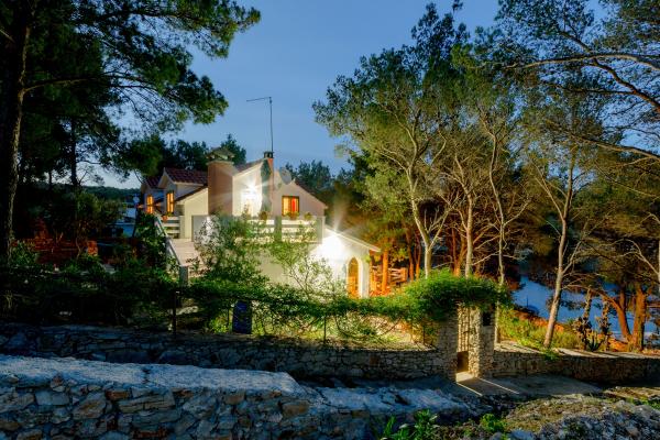 Új építésű, modern lakás egy csendes öböl déli-nyugati részén a sziget. Nem található, közel a tengerhez, egy fenyves erdőben, távol a sziget 15 perces sétával.