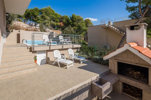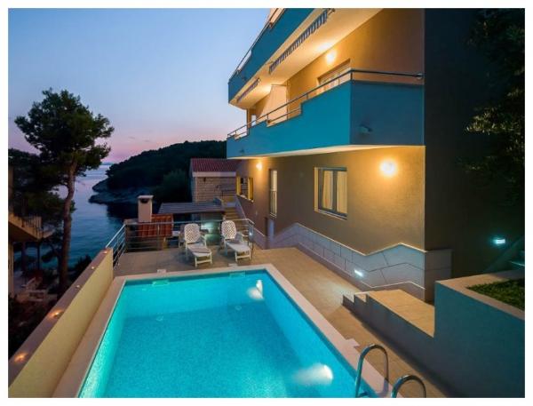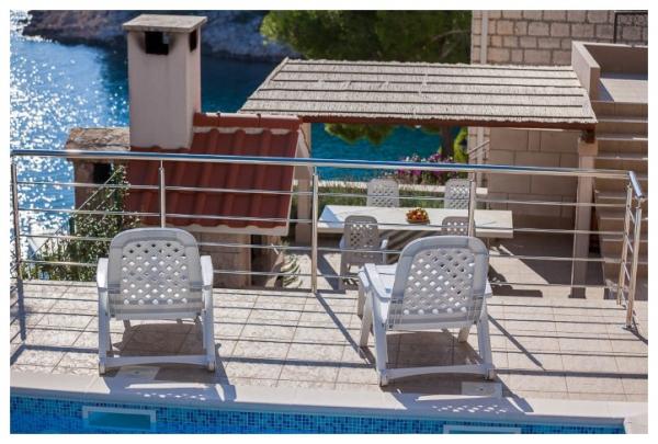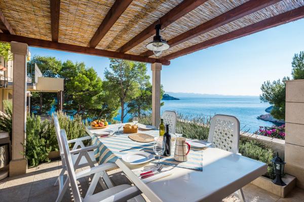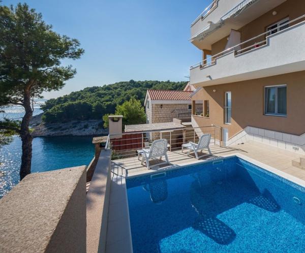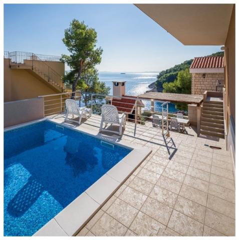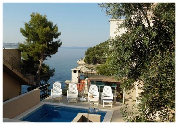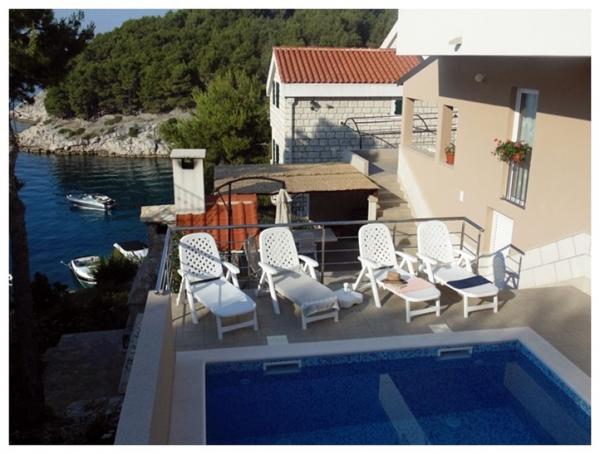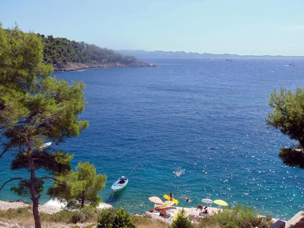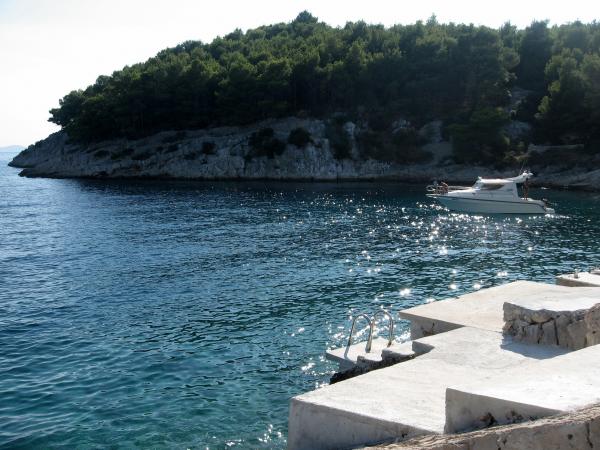 Töltse nyaralását egy tengerparti apartmanban az Osibova-öbölben, Brač szigetén! A BILI apartmanok Brač szigetének délnyugati oldalán, az Osibova-öbölben találhatók, 2 km-re Milna városától. Apartmanházunk a kerttel együtt 400 m²-es helyet foglal el, és a tengertől kb. 25 méterre található. Maga a ház egy földszintből, egy emeletből és egy magas tetőtérből áll, és 6 lakásból áll, ebből 4 kiadó. A vendégek használhatják a grillezőt és a nagy, közös teraszt, ahonnan kilátás nyílik a tengerre. Közvetlenül a ház mellett van egy parkoló. A ház keleti oldalán egy 23 m²-es medence található. Lehetséges kültéri zuhanyzó használata. A ház alatt betontömb van lépcsővel. Minden szükséges felszerelés rendelkezésre áll a gumicsónakok és csónakok kikötéséhez. A kavicsos és köves strandok az öböl belsejében találhatók, és 5 és 10 perces sétára találhatók az apartmantól.