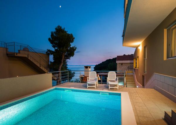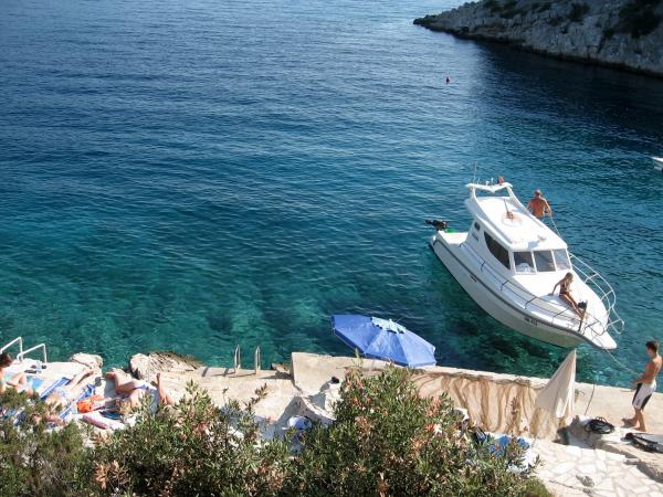 Gyönyörű öbölben tiszta víz és egy privát strand, ahol élvezheti a békét. Lakás teljesen látható, tiszta és felszerelt mindent, amire szüksége van a nyaralás. Különösen hangsúlyozzák számomra alapvető kerti zuhany és grill extra szobával. Host-ok (az egész család), teljes mértékben elkötelezett a munkája, mindig az Ön szolgálatában. Abszolút ajánlás azoknak, akik valóban szeretnék, hogy egy kis szünetet a mindennapi stressz és a tömeg az év során.