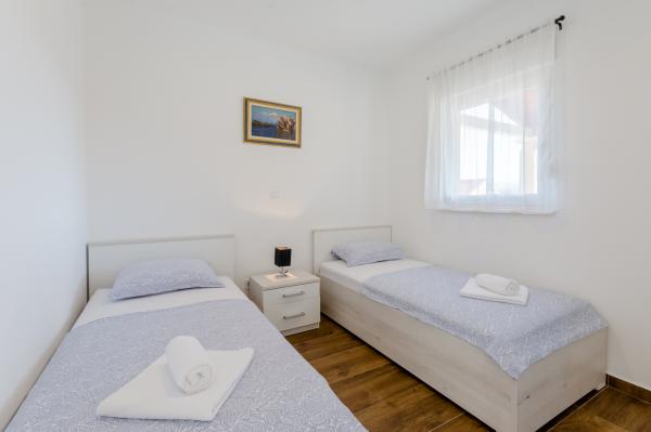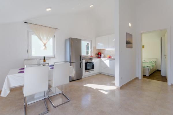 Kiváló elhelyezkedés, nagyszerű apartman, nagyszerű terasz és csendes helyen. Közel a tengerhez, ahol nincs tömeg, de tiszta a tenger. Az első bár vagy üzlet 3 km-re található. Pihenhet enyhén vagy aktívan. Számos makadám ösvény található gyalogos vagy kerékpáros túrákhoz. És mindenképpen látogassa meg a Kapetanija Lozje tavernát egy nagyszerű steakért. Ajánljuk.