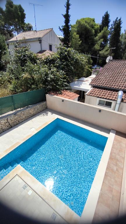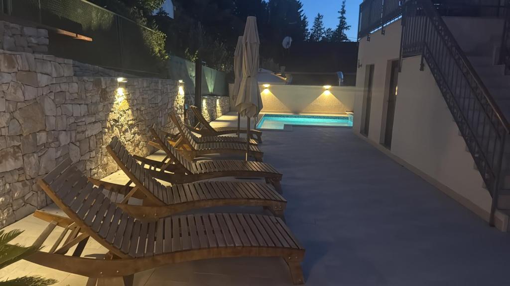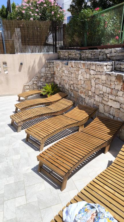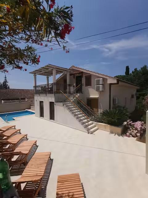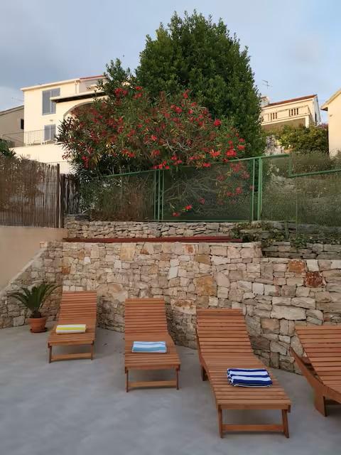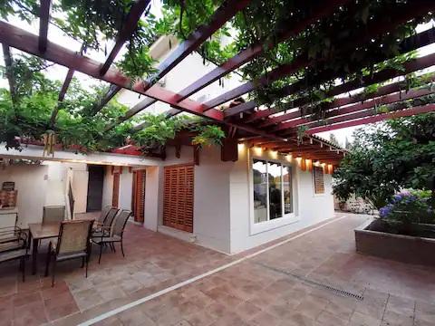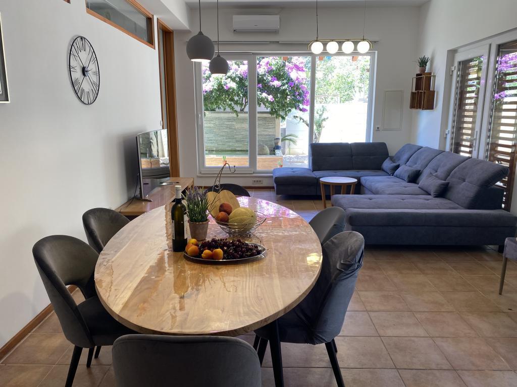 Üdvözöljük tágas Wisteria apartmanunkban, amely a földszinten található, a csendes Vlaška-öbölben. A legtöbb milnai szálláshellyel ellentétben lépcső nélkül közelíthető meg, ami ideális babakocsival vagy kerékpárral érkező családok számára. Kerékpárjaink is rendelkezésre állnak a környék felfedezéséhez. Az apartman kivételesen magas mennyezettel (3 m) és nagy panorámás falakkal rendelkezik, amelyek ritka tágasságérzetet biztosítanak. Kiváló minőségű DanKuchen konyhával felszerelt, és teljes kényelmet kínál két WC-vel, két bidével, fürdőkáddal és zuhanyzóval. Élvezze mediterrán kertünket hagyományos dalmát grillezővel, tóval és egy luxus Wisteriával, amely tavasszal díszíti az egész birtokot. 200 méteres körzetben éttermek (OMO, Bago, Plaža) és kávézók találhatók gyönyörű kilátással. A katamarán móló mindössze 200 méterre található, ahonnan könnyen ellátogathat Splitbe, Hvarba vagy Dubrovnikba. Ingyenes parkolás biztosított. Élvezze fűtött medencénket, amely további luxust és kényelmet biztosít nyaralása alatt.