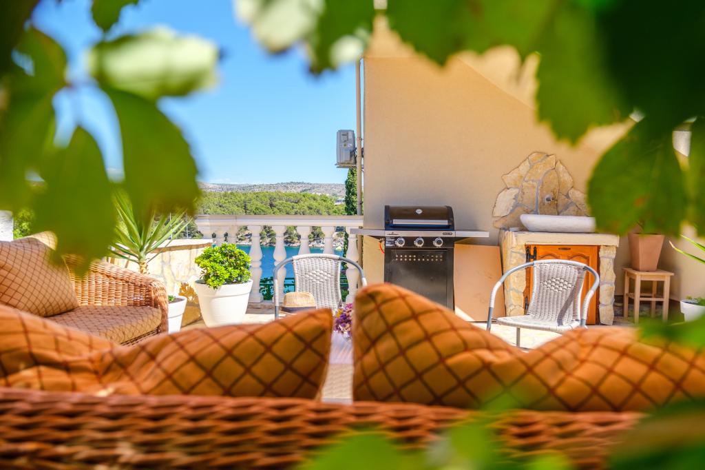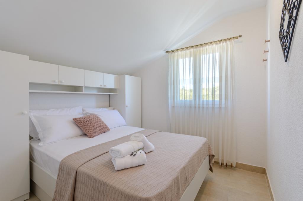 A tenger mellett, 28 méterre az Osibova-öböl strandjától, új, luxus, modern felszereltségű apartmanok légkondicionálóval, wifivel, TV-vel, külön bejárattal, parkolóval és gyönyörű, tengerre néző privát teraszokkal. Minden ablak és teraszajtó szúnyoghálóval védett. Az 1. számú apartman (4+2 fő) a tágas konyha, nappali és fedett terasz (12 m2) mellett 2 hálószobával és 2, a hálószobákhoz kapcsolódó fürdőszobával rendelkezik, amelyek közül az egyikben mosógép is található. A 2. számú apartman (2+2 fő) 1 hálószobával, egy fürdőszobával, konyhával, nappalival és egy hatalmas (30 m2) terasszal rendelkezik, amelyet részben szőlő borít. A kiváló minőségű matracok mellett az apartmanokban luxus ágynemű (szatén) és törölközők, hajszárító és vasaló található. A konyha minden szükséges edénynel, pohárral, főző- és evőeszközzel, mosogatógéppel, nagy hűtőszekrénnyel és fagyasztóval, tűzhellyel sütővel, kávéfőzővel, kenyérpirítóval, mikrohullámú sütővel és vízforralóval felszerelt. A vendégek ingyenesen használhatják a törölközőket, napozóágyakat és napernyőket a strandon, valamint mosógépet és gázgrillt is.