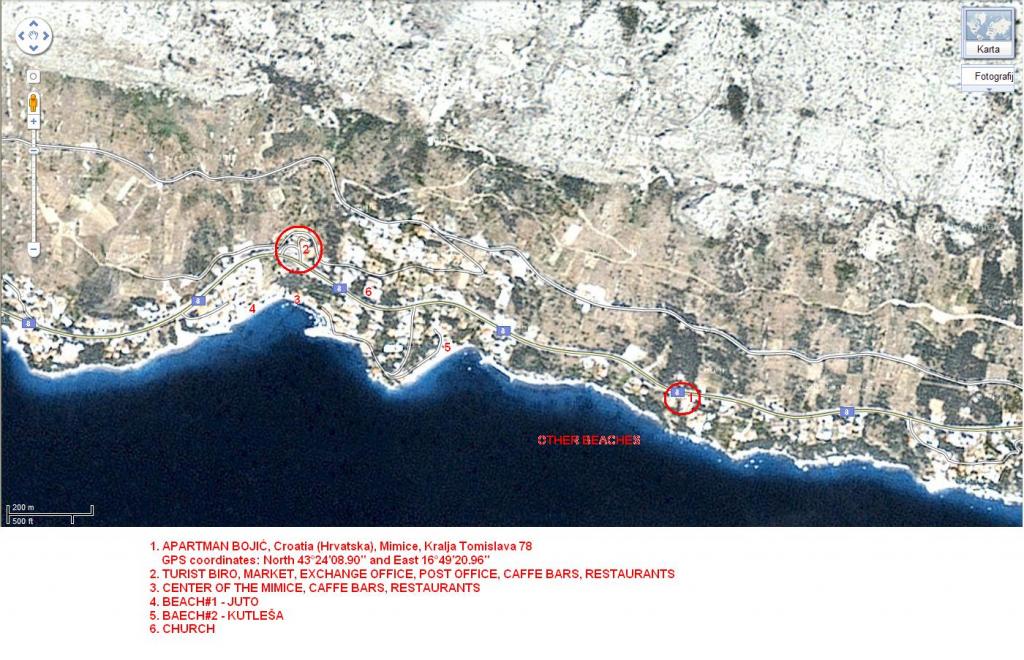 Az Apartments Bojić épülete Mimicében, Omis városától 12 km-re Makarska felé, Marusici határában található. 15 méterre vannak a főúttól, és 500 méterre a központtól. A ház három apartmanból áll, minden apartmanhoz tengerre néző erkély tartozik, kellemes, biztonságos és csendes nyaralást biztosít az egész család számára, távol a központtól, sok fürdőző nélküli stranddal. A tenger rendkívül tiszta (víz alatti források és áram) az úszáshoz és a búvárkodáshoz. Nagyon jól beszélünk angolul, a kommunikáció során cseh, olasz és német nyelvet használunk. Az ár tartalmazza a légkondicionálást, a Wi-Fi-t, az idegenforgalmi adót és a parkolást. Segítünk a vendégeknek megtalálni a szükséges információkat, és megállapodás alapján további tevékenységeket szervezünk.