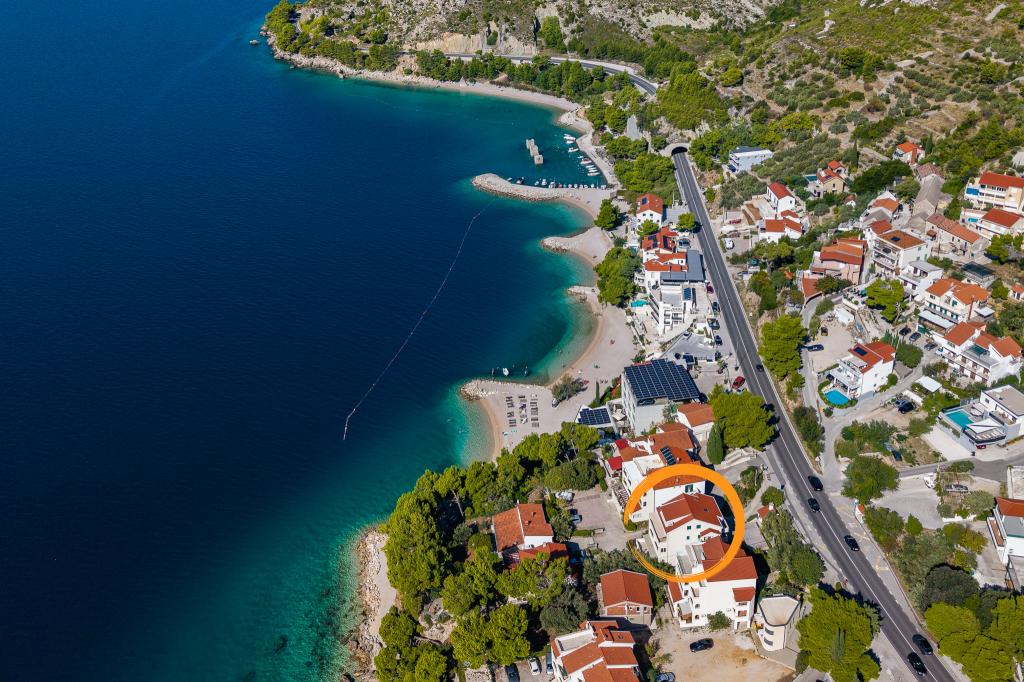Üdvözöljük a Bosiljka Apartmanokban Medića-ban – egy kis dalmát békeoázisban Omiš és Makarska között. A kavicsos strandoktól és a kristálytiszta tengertől mindössze 50 méterre a vendéglátók családtagként fogadják vendégeiket. A tengerhez való privát lejárat és az ingyenes parkoló a ház mellett gondtalan pihenést biztosít az első perctől. A teraszokon és az erkélyeken fenyők és tenger illata lengedez, miközben a tekintet a végtelen kékségben vész el. Csak egy jó könyvre… és egy mosolyra van szüksége. A helyszín tökéletes kiindulópont kirándulásokhoz: Omiš (15–20 perc), Split és Trogir kulturális élményekhez és sétákhoz az óvárosban, Makarska a nyüzsgő sétányával, a Cetina folyó raftinghoz és a Biokovo Skywalk lenyűgöző kilátásaihoz. A közelben bolt, posta, gyümölcsárus, éttermek és kávézók – minden “papucstávolságra”.