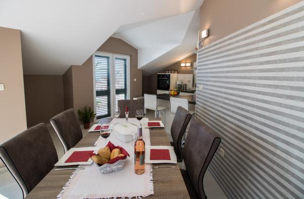 A hetedik hónap végén a penthouse-ban szálltunk meg. Gyönyörű volt nekünk .. a penthouse tiszta volt, modern módon felszerelt, .. kilátással volt a tengerre a teraszról. Gyógyító volt a lélek és a szem számára. Mrs. Mira olyan kedves és kedves ember, mindig mosolyogva .. a strand közel van .. gyermekes családok számára nagyon biztonságos hely .. Örömmel ajánljuk Önnek, és természetesen örülünk, hogy újra eljövök .. Nagyon köszönöm Üdvözlet Edis