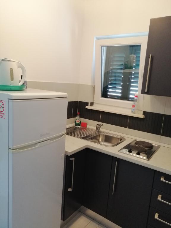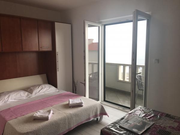 Apartman közel a tenger kb 50m a lépcsőn, közvetlenül nem haladnak át az utcán, kavicsos strand, tiszta, rendezett, meglehetősen nagy -Saját. A lakás áll egy hálószoba egy dupla ágy és egy kis része kuchenno étkező, ahol van egy kanapé 2 fő részére. Ezen kívül van egy terasz, részben tengerre néző. A konyha teljesen felszerelt, alapvető, lényegi főzőedények, szép nagy fürdőszoba. Nagyon szép házigazdák, azt javasoljuk azoknak, akik a béke, tökéletes azok számára, akik gyerekekkel.