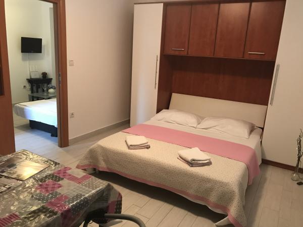 Remek szállás. Két szobás és két king-size ággyal rendelkező apartmanban voltunk, kis konyhával, mindennel, ami a gyors elkészítéshez szükséges... Ingyenes parkolás... Kedves tulajdonosok.. A szállás alapvetően a tengerparton van, és gyerekbarát.. Szép kis hely, csendes és tökéletes nyaralásra kisgyerekekkel.. Kevés kicsi és meghitt strand van, nincs tömeg, nincs hangos zene, csak nyugalom és csend... sok természetes árnyék.. A közelben van egy tengerparti bár és étterem .. Határozottan ajánlom, és újra elmennék.
