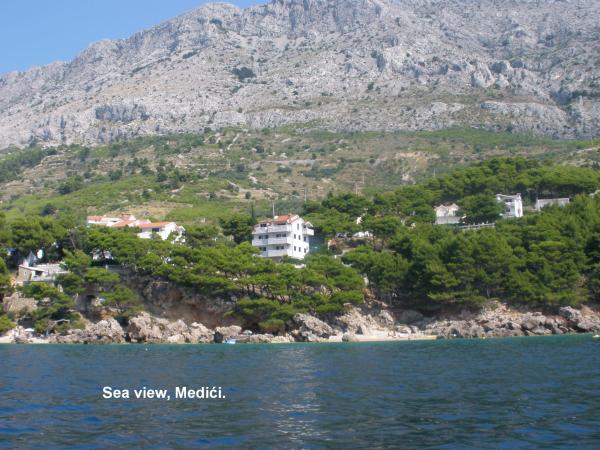Az apartmanok gyönyörű, csendes helyen találhatók, közeli zöld fákkal és csodálatos kilátással a tengerre az erkélyekről. Van egy privát, gyönyörű strand körülbelül 2 perc sétára a háztól, vagy meglátogathatja a Medici fő strandot két bárral. Az apartmanok egy kis távolságra vannak az élelmiszerbolttól (7 perc séta) és néhány étteremtől (mintegy 10 perc sétára). Ha autóval érkezik, ellátogathat néhány közeli, turisták által gyakran látogatott helyre (Omiš, Brela, Split, Makarska stb.) Az apartman tiszta volt, igazán szép belsővel. Minden vendég rendelkezésére áll egy közös grill (az apartmanház mellett). A tulajdonosok kedves és állandóan mosolygós emberek, mindig készségesen segítenek, ha valamire szüksége van. Teljesen ajánlom ezeket az apartmanokat azoknak, akik nem szeretik a zsúfolt strandokat és az esti intenzív zajt, mert valóban béke és nyugalom van. Nagyon élveztük a nyaralást ott, és mindannyian reméljük, hogy egy nap visszatérünk.