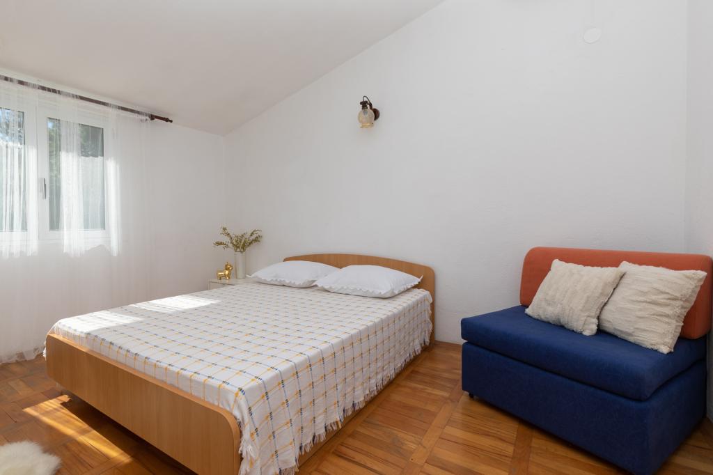 A házban három apartman található. Minden apartman külön bejárattal, nagy terasszal és erkéllyel rendelkezik, kilátással a tengerre és a Biokovo-hegyre. Két perc sétára van a strandtól. A házhoz tartozik egy nagy parkolóhely a ház előtt. Üdvözöljük