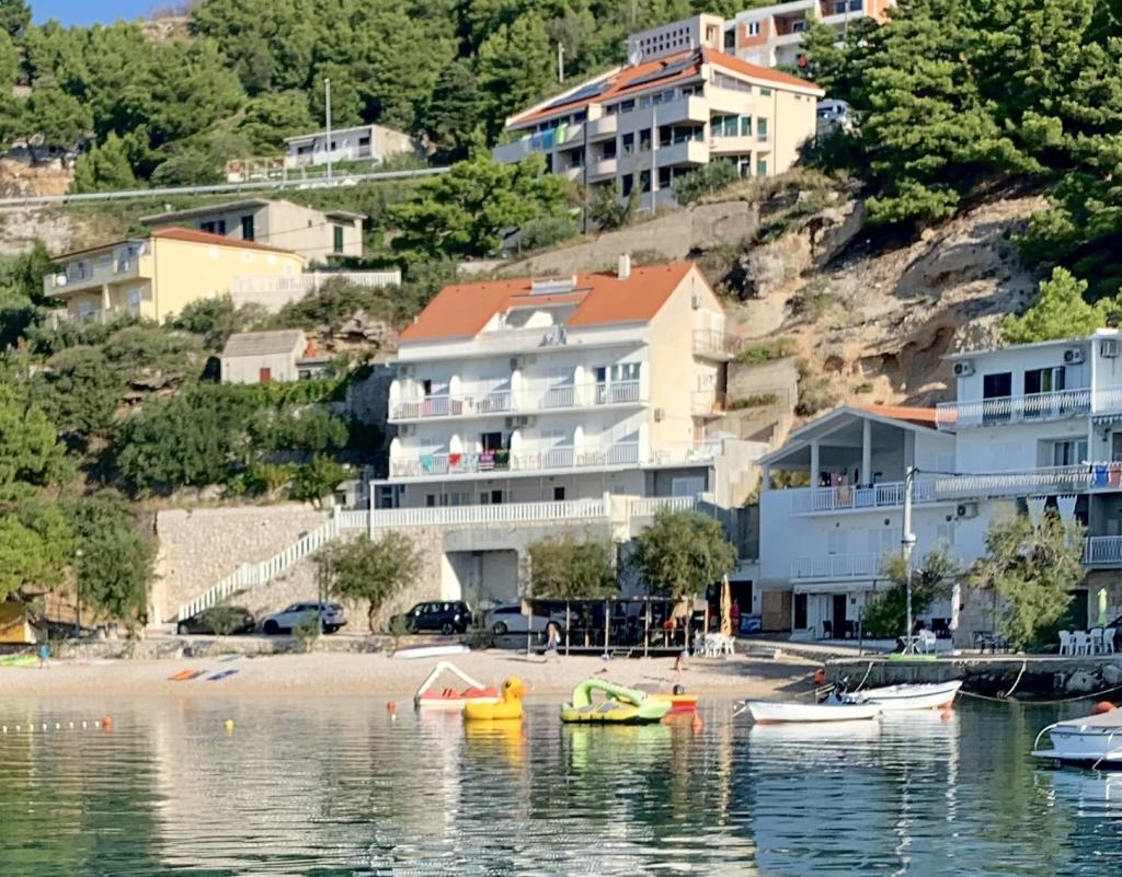 Spiro apartmanok Mimice, egy kis város az Adria partján, 35 km-re Splittől. Épül lépcsőzetes alapon nyílik a strand az öböl Juto található a tenger mellett, akkor az Ön számára a ritka lehetőséget eltöltött nyaralás a szobában vagy lakás a tengerparton, az idilli dalmát falu, amely jól kapcsolódik a turisztikai központok Split (35 km), Omis (14 km ), Makarska (25 km), és nem egy nap kirándulás Dubrovnik (180 km), vagy hajóval a Brac nem megvalósítható.