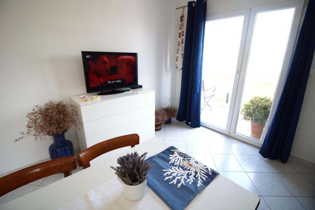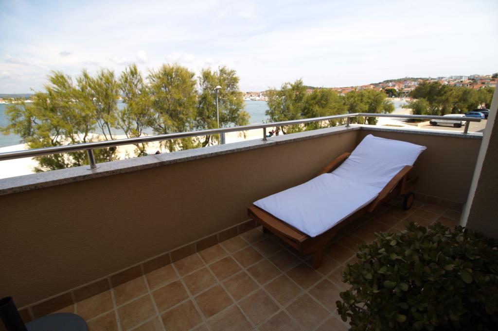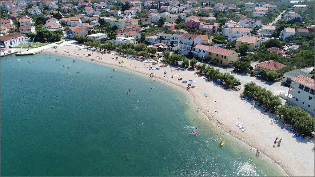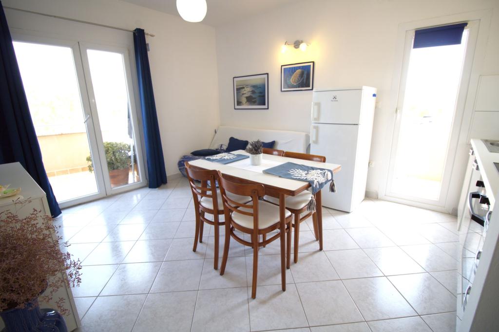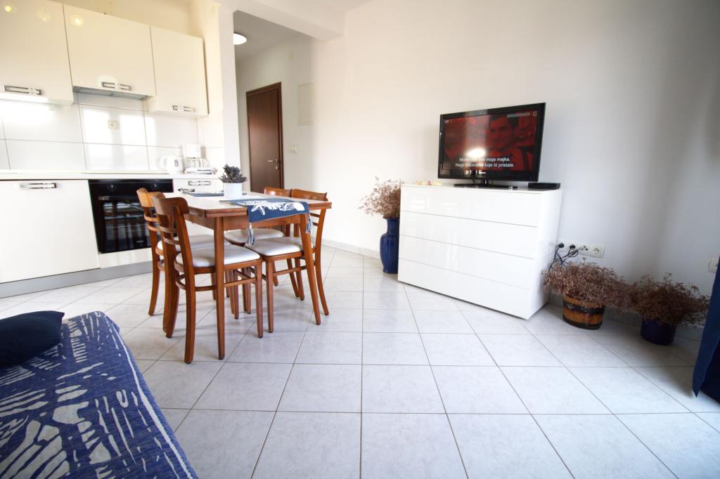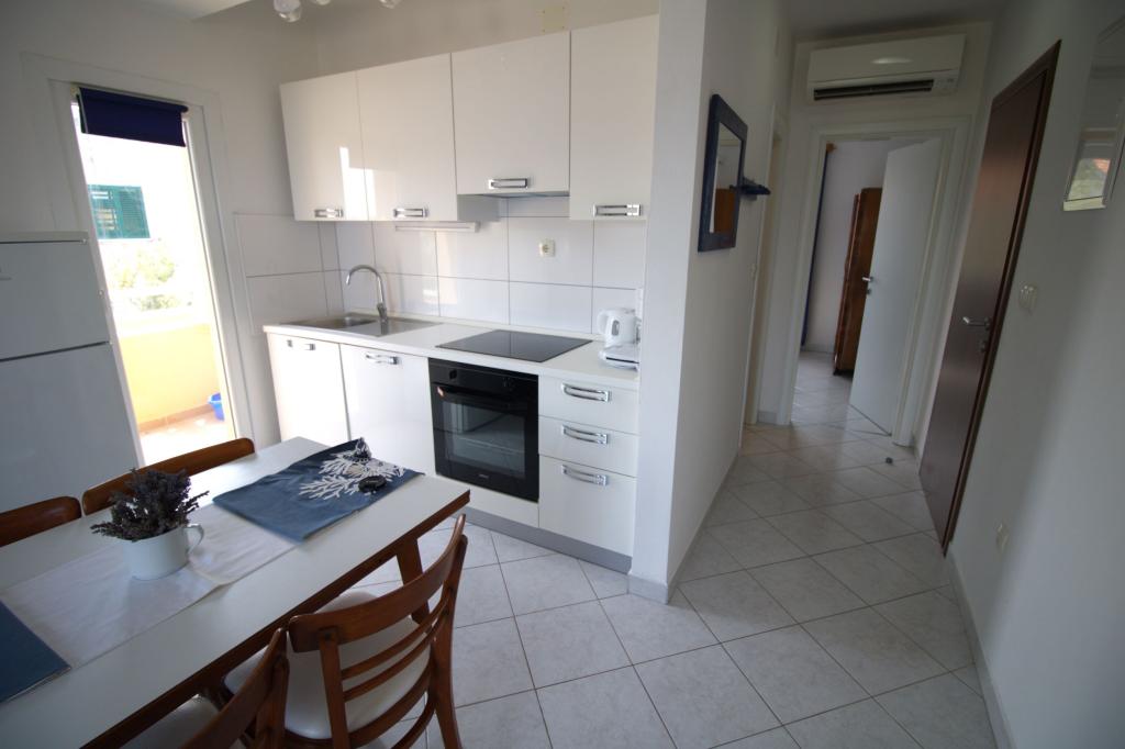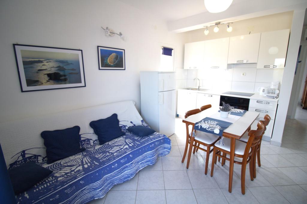 Frissen felújított és teljesen berendezett lakás, első sorban a tenger felé. Az apartmanban egy hálószoba található, ahol két felnőtt aludhat. Az apartmanban van egy nappali kanapéval, ami pótágyként is használható. Parkolás a lakás előtti udvarban ingyenes. Az apartmanból kilátás nyílik a tengerre és az egész Murter-öbölre. Kiváló helyen található, max. 10 perc könnyű sétára Podvrška homokos strandjától és mindössze 70 méterre a helyi Luka strandtól (beton, kavicsos és homokos strand kombinációja. Az első üzlet (Konzum) mindössze 100 méterre van az apartmantól. Az apartman egy 10 -perces könnyű sétára Murter központjától.