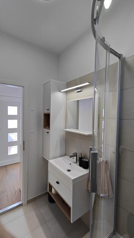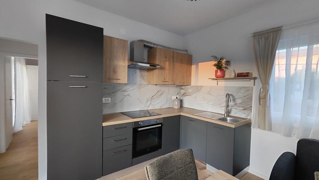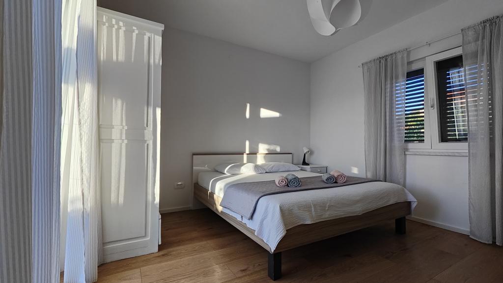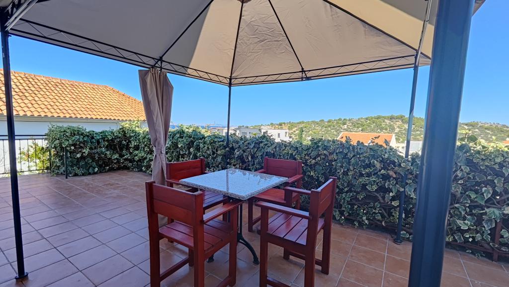 Teljesen felújított apartman privát környezetben, nagy terasszal és tengerre néző kilátással, 300 méterre a Slanica homokos strandtól. A vendégek rendelkezésére áll grillező és egy udvari társalgó, valamint egy biztonságos parkolóhely. Az apartmanhoz egy nagy, különálló hálószoba tartozik. A konyha teljesen felszerelt, kávéfőzővel, mosogatógéppel, nagy hűtőszekrénnyel és fagyasztóval, valamint mosógép is rendelkezésre áll.