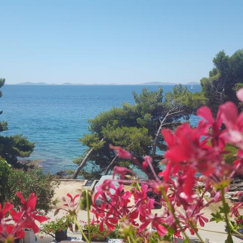 Az apartman a tenger közvetlen közelében található. Két teraszáról csodálatos kilátás nyílik a tengerre és a Kornatira. Az apartman berendezése elavult, de az igénytelen vendégek számára elegendő. A kiváló elhelyezkedés felülmúlja a lehetőségeket. A közvetlen közelben van egy gyönyörű kis strand, ahonnan könnyen elérhető a tenger. Reggelente árnyék van a parton. A híres Slanica strand is nagyon közel van a szálláshelyhez.