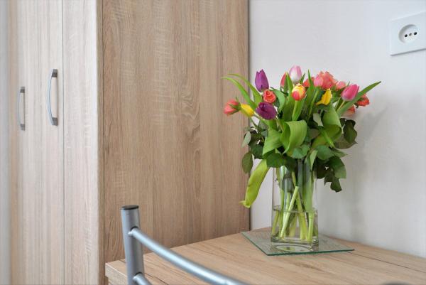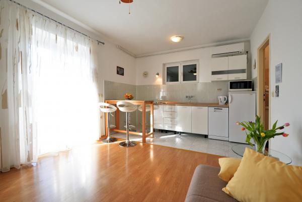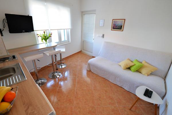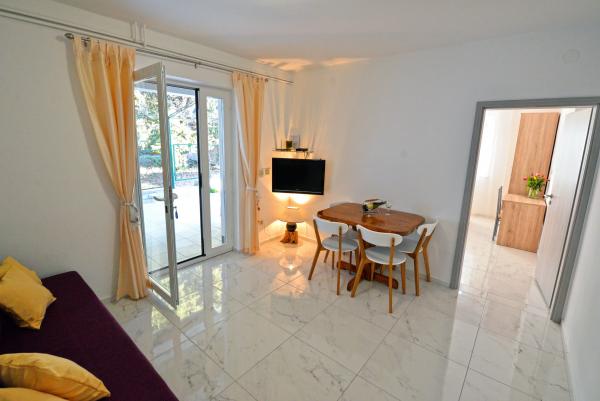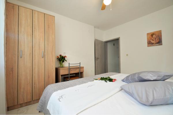 Sorozatban második éve maradtunk! Nagyon tetszett a szállás, mert minden tiszta, tágas terasz és az elrendezett szobák funkcionalitása! Különböző strandok találhatók a közelben, és néhány perc sétával elérhetők. Meglátogattunk 3-at (város, salnica, alrégiók), mindegyik nagyon szép. A közelben pékség, bolt és számos étterem található. Nagyon jó egy aktív vagy pihentető nyaraláshoz! A helyiek barátságosak és nem tolakodóak.