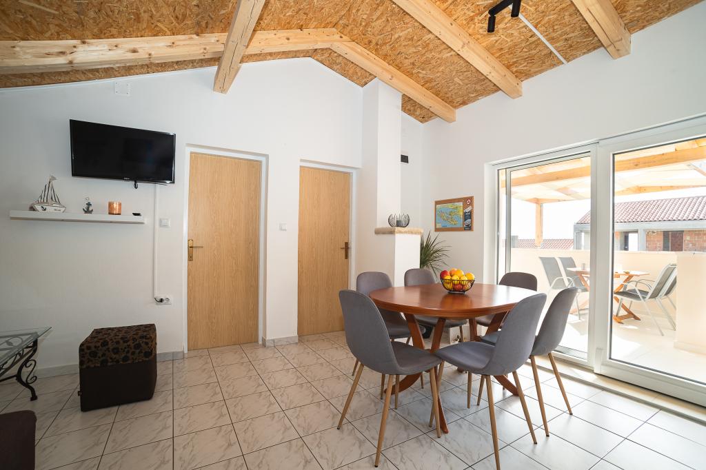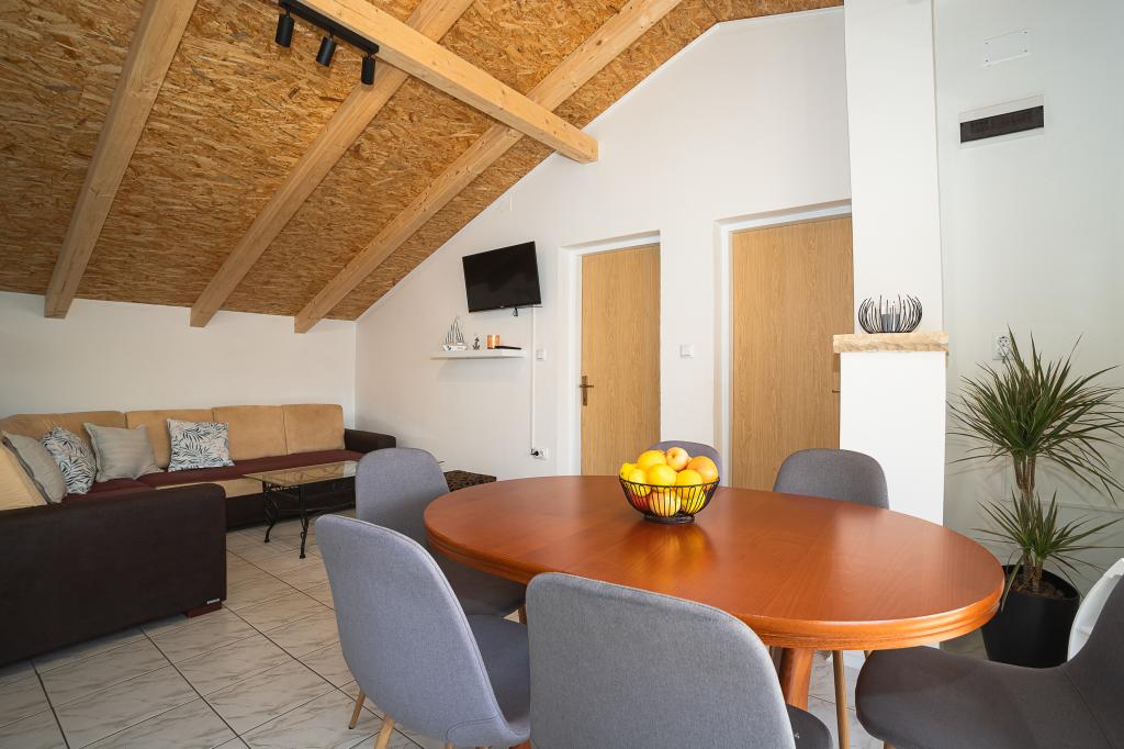 Kényelmes apartmanokat kínálunk 4-6 fő számára. Minden apartmanhoz teljesen felszerelt konyha, fürdőszoba, nappali, 2 hálószoba és saját erkély tartozik. Az Ön rendelkezésére áll egy nagy udvar kerttel, grillezővel, asztallal és székekkel, valamint tároló kerékpárok vagy babakocsik számára. Az apartmanok mindössze 150 méterre találhatók az Adriai-tenger egyik legszebb strandjától. Murterben mindent megtalál, amire szükség van egy kellemes nyaraláshoz. Számos étterem és kávézó, néhány szupermarket, pékség, hentes, piac, klinika, gyógyszertár, posta, bank, ATM, benzinkút, templom, mozi, kikötő, búvárklubok, sportpályák és játszóterek vannak a gyermekek számára. Bérelhet csónakot, robogót, mopedet vagy kerékpárt. Hajókirándulásokat is kínálnak a Kornati Nemzeti Parkba, a Krka Nemzeti Park pedig a közelben található. Több kilátót is javasolunk, ahonnan gyönyörű kilátás nyílik a helyre, a környező szigetekre és a Kornatira. A "Hojsak" apartmanok a Murter bejáratánál találhatók. A "Čigrađa" strand, a "Raduč" domb és Murter régi része, a "Selo" között találhatók.