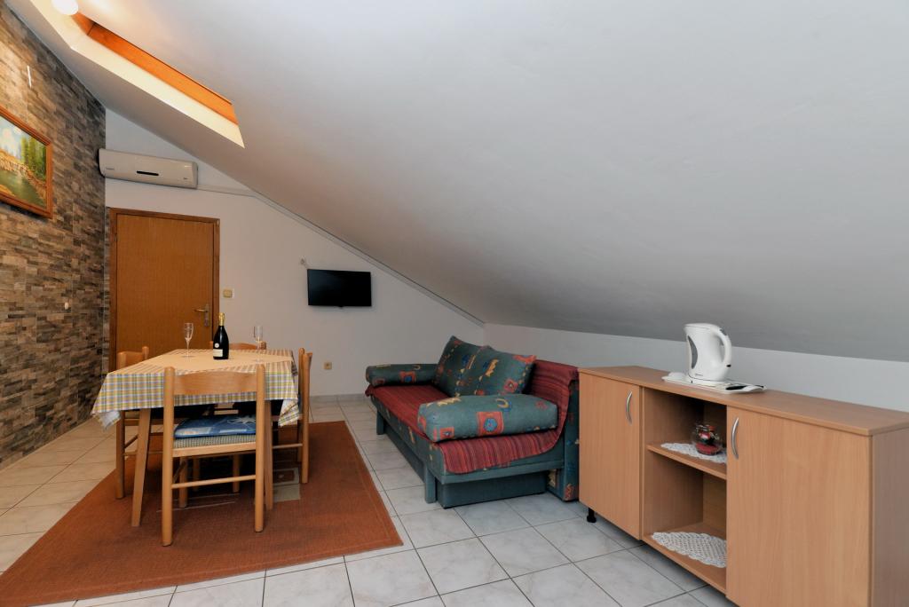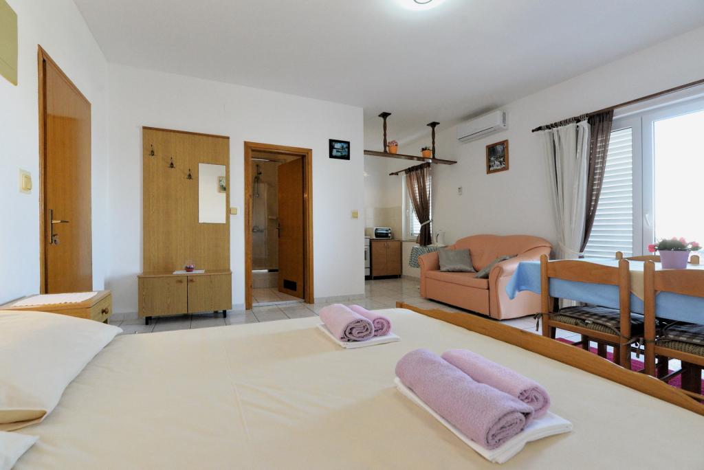 Ebben a lakásban maradtunk, és ez igazán csodálatos élmény volt. A tulajdonos nagyon barátságos, és ha valamire szükség van, gondoskodnak arról, hogy mindent megkapjon, amire szüksége van. Az apartman légkondicionálóval, erkéllyel rendelkezik, ahonnan szép kilátás nyílik Murter szigeteire és Murter fő kikötőjére (város). Nagyon tetszett, hogy a csodálatos Podvrške strand mindössze 800 méterre volt az apartmantól, a központi strand pedig mindössze 300 méterre, valamint gyalogosan is a fővárosban voltunk 5-10 perc sétára. Minden nagyon közel van az apartmanhoz (háttér, szupermarket, kávézók, sörözők, halpiac stb.), amely kiválóan alkalmas arra, hogy megszálljon. Mindenkinek tudom ajánlani ezt a lakást, aki szereti, ha a közelben vannak a dolgok, és éjszaka nyugodtan lehet aludni, mert nyugodt helyen van. Az autóknak is van árnyékos parkolója, ami szintén nagyszerű. Határozottan visszatérünk ebbe a lakásba, mivel nagyon elégedettek voltunk az árral, a hellyel és minden mással, és Murter látogatása fantasztikus élmény volt.