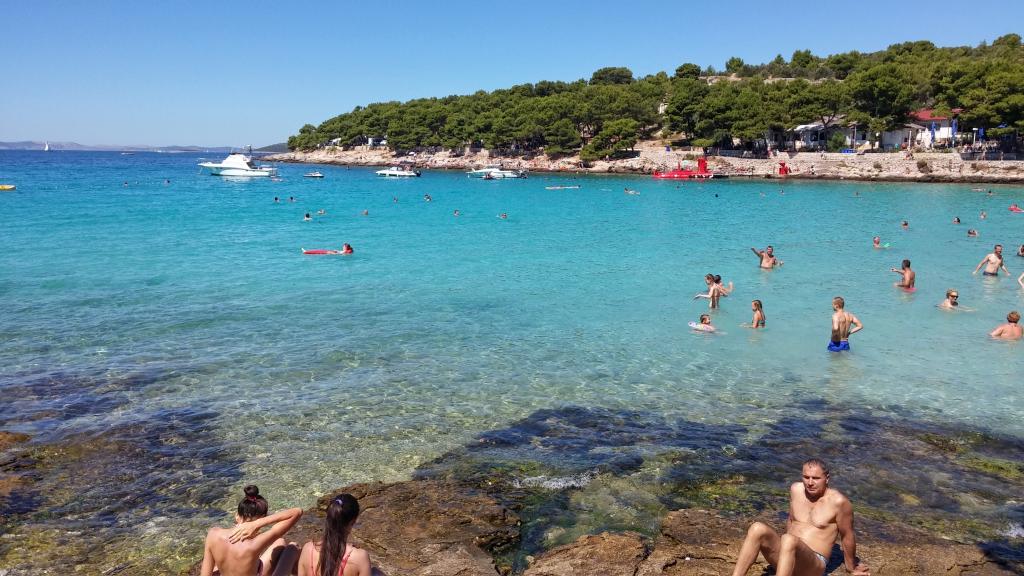Lakás gyönyörű kilátással a tengerre található egy kiváló helyen, mindössze 40 méterre a tengertől két saját őrzött parkolóhely is. Az apartman három hálószoba, amely képes aludni 6 felnőtt 2 pótágy két ember számára. A lakás jól felszerelt: TV, légkondicionáló, ingyenes Wi-Fi, sütő és grillező. Erkély / terasz 20m2, gyönyörű kilátással a tengerre, a naplementét, a Kornati-szigetek és a világítótorony. Ez csak 4 perc séta a tengerparton Brine, 12 perc séta a tengerparton Podvršci, 15 perc séta a tengerparton Čigrađa és 5 percre a boltok. A város központjától 20 perc sétára található.