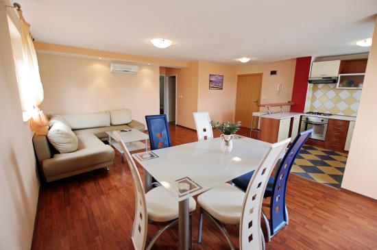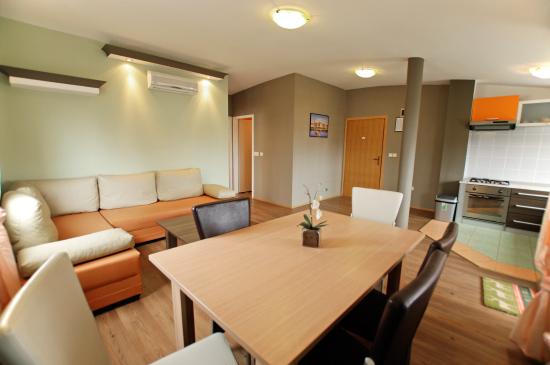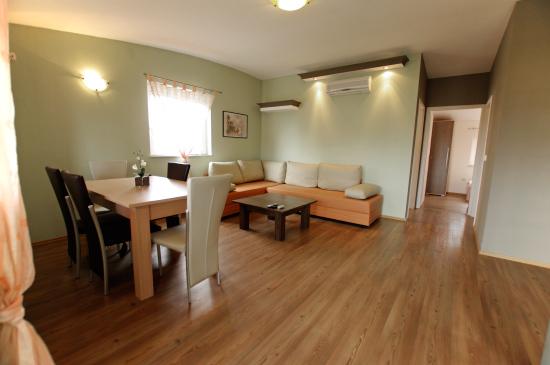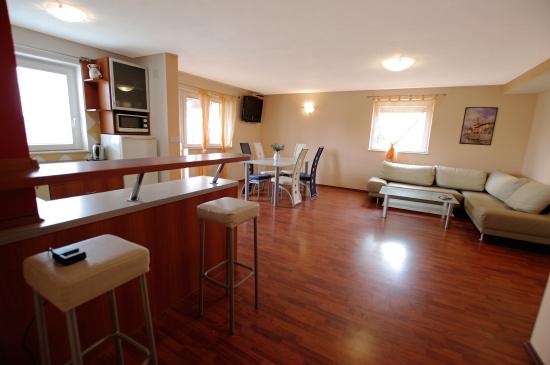 Kiváló szállás, közel mindenhez, ami egy nyaraláshoz kell. 8 napig voltunk ott, nem használtuk az autót. Az apartmanok rendezettek és felszereltek, a tulajdonosok pedig megközelíthetőek és nem feltűnőek. Minden dicséret és ajánlás