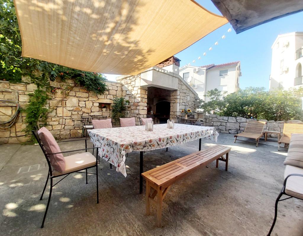 Stúdióapartman 12 m2-es terasszal. Az apartman 2 fő részére készült. Nagy franciaágy, teljesen felszerelt konyha, étkezőasztal, fürdőszoba. Terasz és étkezőasztal. Biztonságos parkolóhely az apartman előtt egy autó számára. Közel a strandhoz. Az apartman 5 perc sétára található a Slanica strandtól és 7 perc sétára Murter központjától.