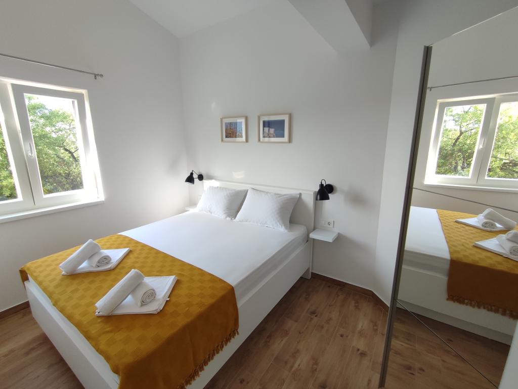 Murter csendes és kellemes környékén, egy családi ház második emeletén találhatóak légkondicionált apartmanjaink, amelyek ideálisak párok és családok pihentető tartózkodásához. A Čigrađa strand 600 méterre, a városközpont pedig 1,3 km-re található. A szálláshely három apartmant kínál: 80 m²-es apartman 4 fő részére két hálószobával, teljesen felszerelt konyhával és tengerre néző erkéllyel. Két 42 m²-es apartman 2 fő részére, mindegyik erkéllyel - az egyik tengerre, a másik kertre néző. Minden vendég számára ingyenes parkolási lehetőség, légkondicionáló minden apartmanban és mosógép a közös helyiségben biztosított. A szálláshely nemdohányzó, a dohányzás az erkélyeken megengedett. Háziállatok nem megengedettek. A vendégek értékelik a szálláshely csendes elhelyezkedését, tisztaságát és kényelmét - tökéletes kiindulópont Murter és a környező strandok felfedezéséhez.