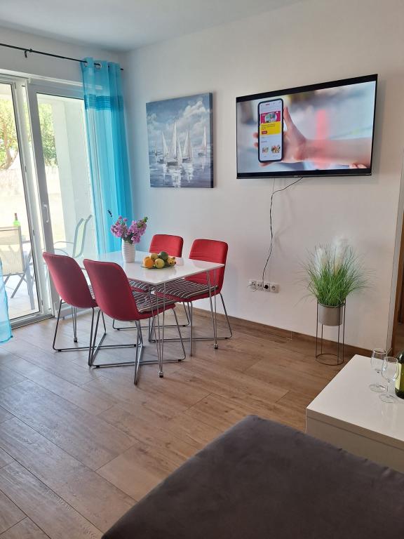 A Villa Tea hat szállásegységből áll. Az apartmanokban egy vagy két hálószoba, fürdőszoba, nappali konyhával és étkezővel, valamint terasz található, ahonnan gyönyörű kilátás nyílik a tengerre. Az apartmanok teljesen felszereltek. Minden apartman saját parkolóhellyel, ingyenes Wi-Fi-vel és légkondicionálóval rendelkezik. A legközelebbi homokos Slanica strand mindössze öt percre található a szálláshelytől. Ha viszont szeret sétálni azon az ösvényen, amelyen a fenyőágak lógnak, és kellemessé teszik a sétát, akkor Slanicától körülbelül tíz percre található a gyönyörű türkiz színű Podvrška strand. A közelben bolt található, a városközpont pedig mindössze 15 percnyire van. Ha teheti, melegen ajánljuk, hogy látogassa meg a Kornati és a Krka folyó nemzeti parkját, a Zrmanja folyó kanyonját, valamint a Vrana-tó és a Telaščica natúrparkokat.