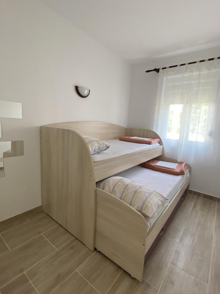 Kényelmes apartmanokat kínálunk maximum 6 fő részére. Minden apartman teljesen felszerelt konyhával, fürdőszobával, nappalival, hálószobákkal és saját erkéllyel rendelkezik. A földszinti apartmanokhoz kertes udvar, grillező, asztal és székek állnak az Ön rendelkezésére. Az apartmanok mindössze 150 méterre találhatók az Adria egyik legszebb strandjától, Murter városában minden megtalálható, ami egy kellemes nyaraláshoz szükséges. Számos étterem és kávézó mellett található néhány szupermarket, pékség, hentes, piac, klinika, gyógyszertár, posta, bank, ATM-ek, benzinkút, templom, mozi, kikötő, búvárklubok, sportpályák és játszóterek gyerekeknek. Bérelhet csónakot, robogót, segédmotoros kerékpárt vagy kerékpárt. A Kornati Nemzeti Parkba hajókirándulásokat is kínálnak, és a Krka Nemzeti Park is a közelben található. Több kilátót is ajánlunk, ahonnan gyönyörű kilátás nyílik a helyre, a környező szigetekre és Kornatira. Az apartmanok Murter bejáratánál találhatók. A Čigrađa strand és a Raduč domb között találhatók.