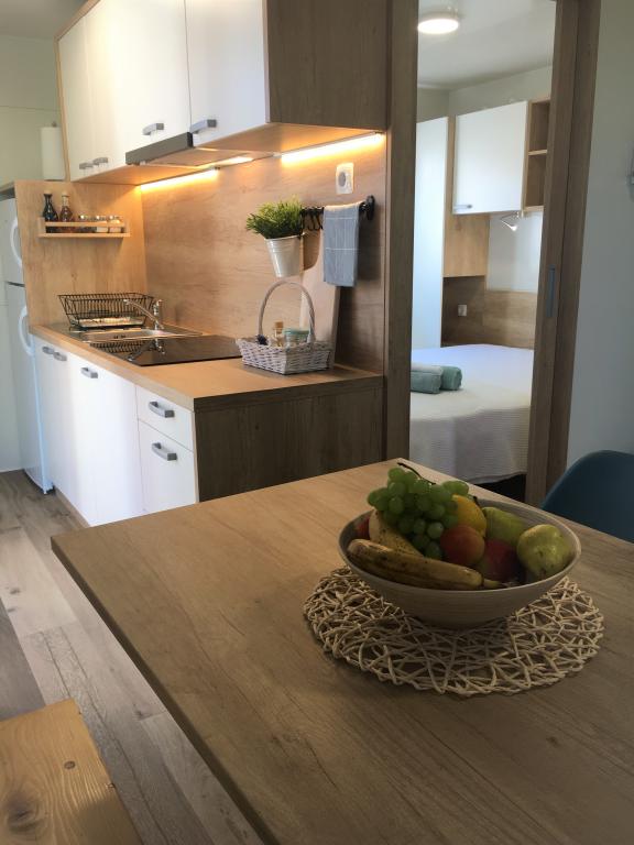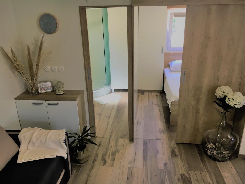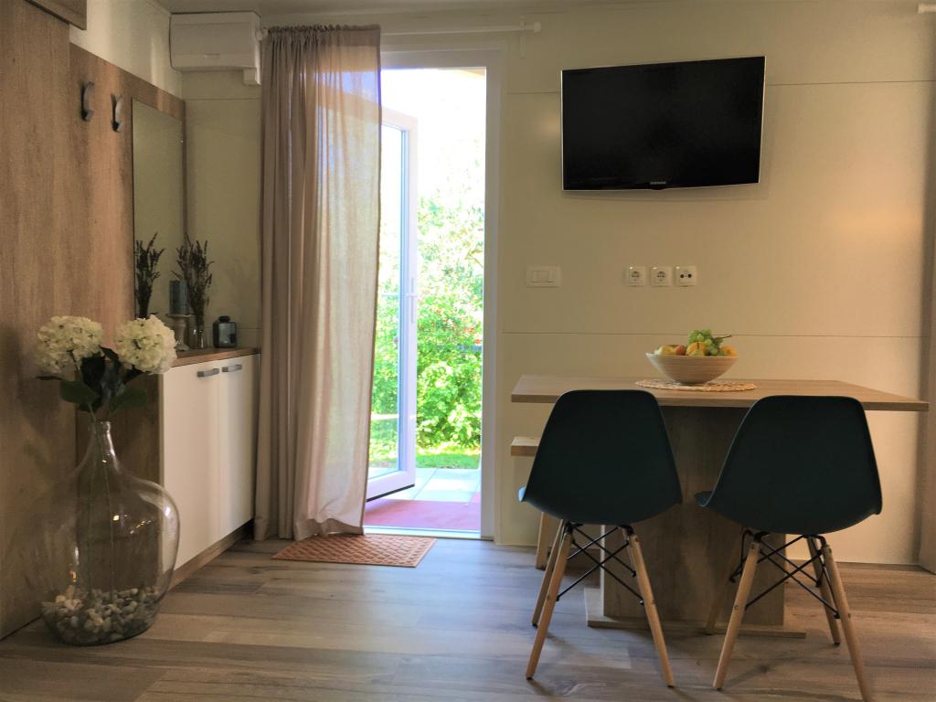 Mobilház egy olajfákkal és növényzettel teli kertben, ideális családok és a magánéletet kedvelők számára. Modern és korszerűen felszerelt ház, mindössze 400 méterre Slanice fő homokos strandjától és 10 perces sétára a központtól. Közel éttermekhez, kávézókhoz, üzletekhez...