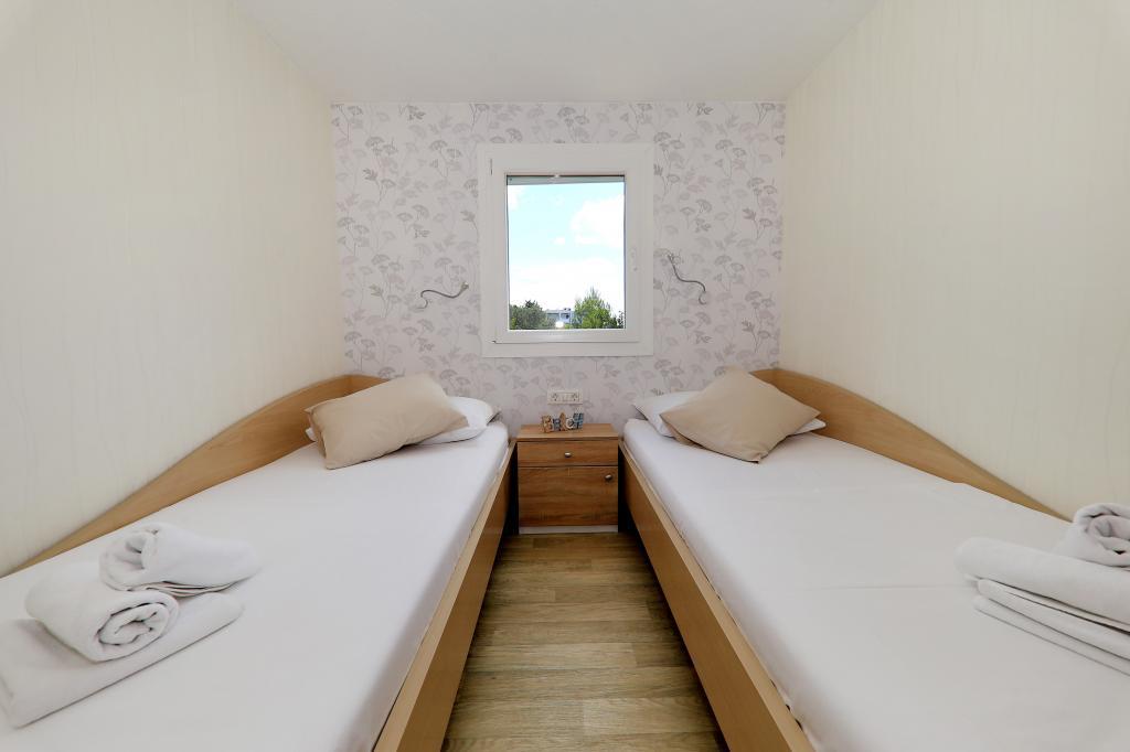 A Lostura kemping mobilházai az Adriai-tenger egyik legszebb strandjának, Slanica-nak a közvetlen közelében találhatók. A mobilház mindössze 30 méterre található a tengertől és 200 méterre a homokos Slanica strandtól. A házhoz egy 40 m2-es terasz tartozik. A házban két hálószoba található, az egyikben egy franciaágy (160x200), a másikban pedig két egyszemélyes ágy (80x200). A nappaliban egy sarokkanapé található, amely pótágyként használható egy felnőtt vagy két kisgyermek számára. A konyha teljesen felszerelt minden szükséges készülékkel (hűtőszekrény fagyasztóval, sütő, mikrohullámú sütő, mosogatógép, vízforraló, kávéfőző). A fürdőszoba zuhanyzóval, mosógéppel, hajszárítóval és fürdőszobai kiegészítőkkel rendelkezik. A nappaliban TV található műholdas vevővel, ingyenes internettel, légkondicionálóval hűtésre és fűtésre. A teraszon étkezőasztal székekkel és nyugágy található napozáshoz és a Kornati-szigetek és a Slanica strand gyönyörű kilátásának élvezetéhez. Parkolóhely a ház közvetlen közelében található.