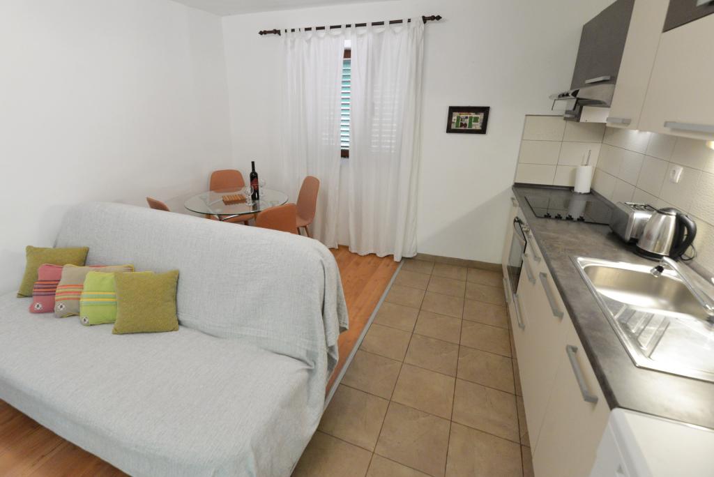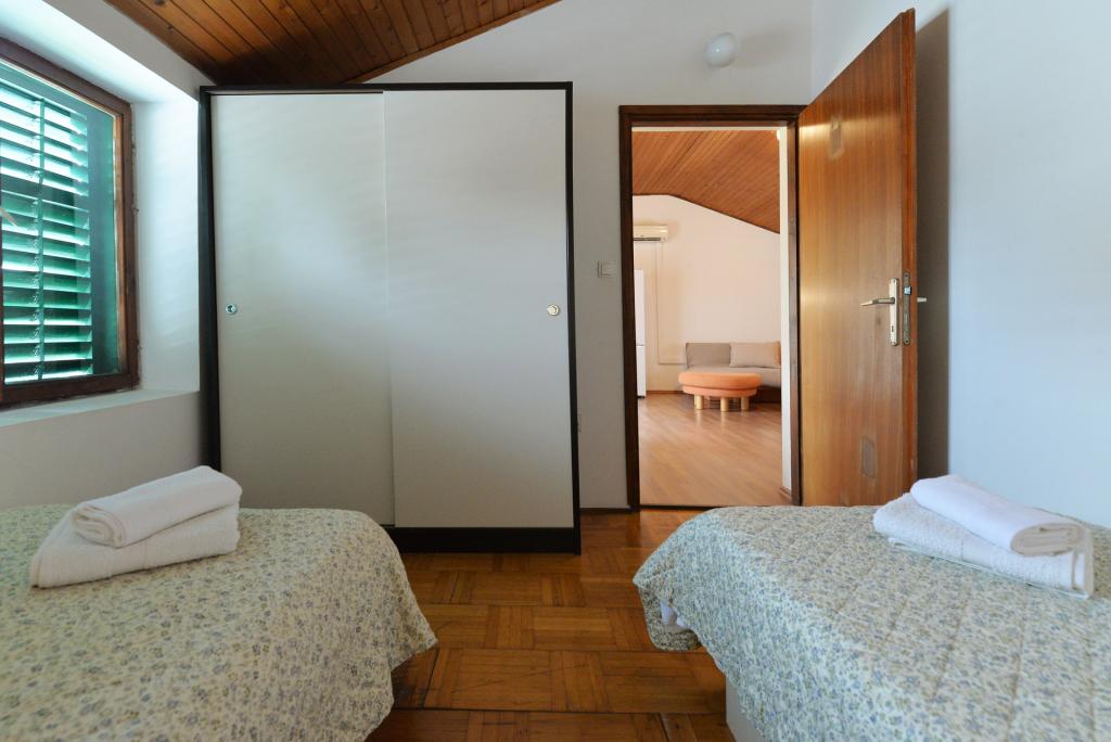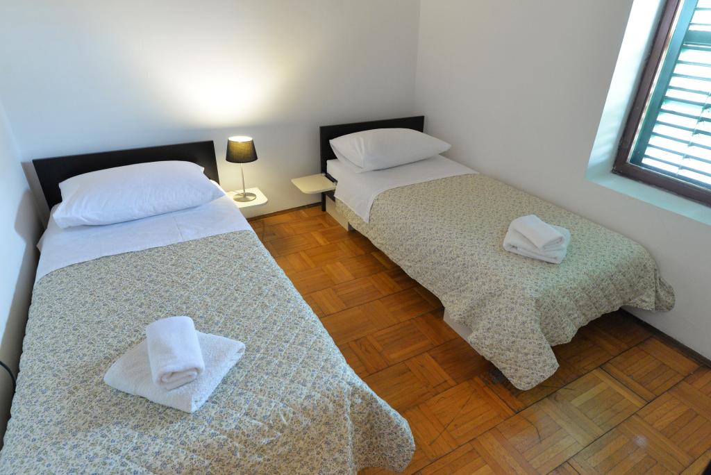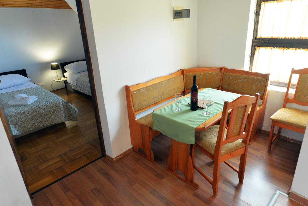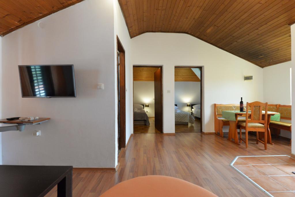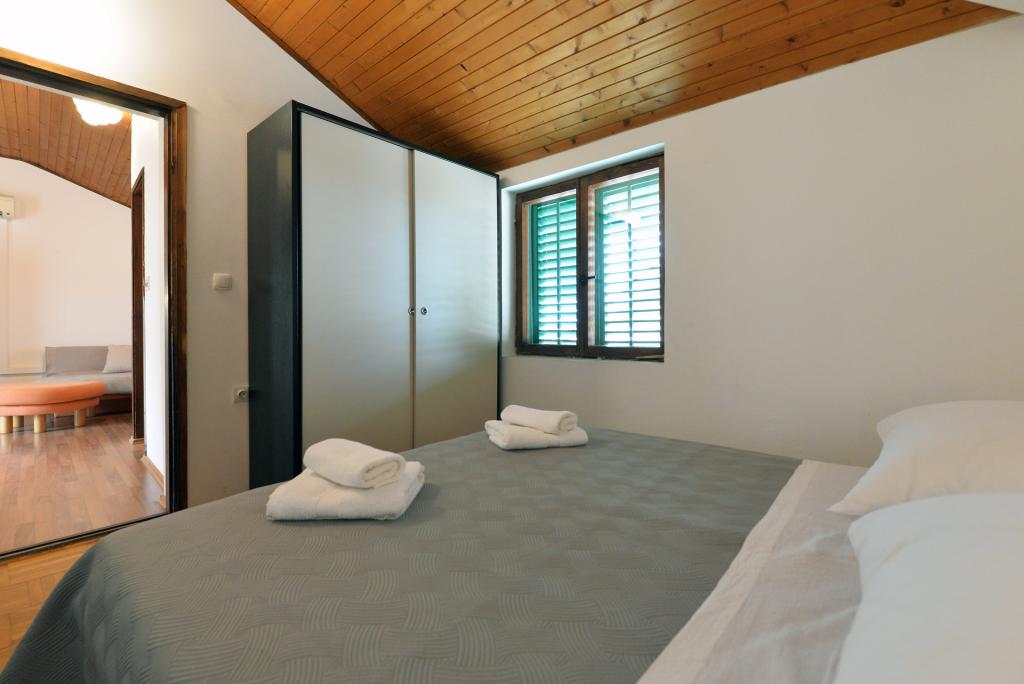 A 2+1 vagy 2+2 fős apartman Murter óvárosában, egy autentikus dalmát kőházban található. Az apartmanban egy szoba található, ahol 2 felnőtt fér el, a nappaliban van egy kanapé (pótágy), melyben aludni is lehet, 1 felnőtt vagy két kisebb gyerek elszállásolására alkalmas. A konyha teljesen felszerelt. A lakásban WiFi internet, klíma, mosogatógép van, a lakáson kívüli tárolóban mosógép található, mely ingyenesen használható. Az apartman előtt egy nagy terasz található grillezővel. A lakáshoz ingyenes parkolási lehetőség tartozik. Az apartman Murter régi részén található. Az apartmanban két hálószoba található, amelyekben 4 felnőtt fér el. A nappaliban van egy heverő (pótágy), mely alvásra is alkalmas. Az apartman Wi-Fi internettel, légkondicionálóval, mosogatógéppel, mosógéppel felszerelt. A lakáshoz két ingyenes parkolóhely tartozik. A képen látható terasz használható.