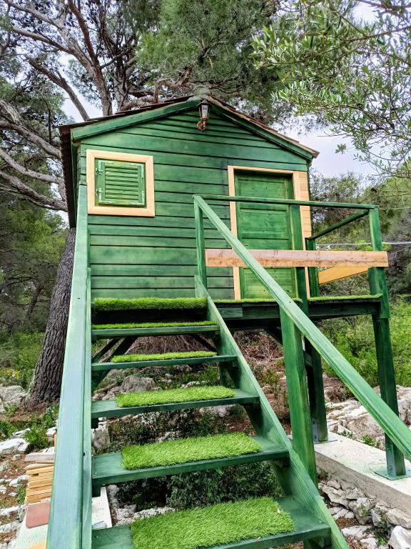 A Zen Resort Murter központja közelében, a Hramina-öbölben található Mali Vinik szigetén található, amely hajóval közelíthető meg, az út 5 percig tart. A szálláshely két épületből áll, egy 40 m2-es kőházból és egy 9 m2-es melléképületből (hőszigetelt), fából készült "faházból", amely két fő részére hálószobaként szolgál (felár - 60 euró/éj). A faház 220 V-os árammal, okos TV-vel, BT hangszóróval, ventilátorral és légkondicionálóval van felszerelve. A fő, kőház egy hálószobából áll, amely a galérián található, és egy okos TV-vel rendelkezik, amelyen két felnőtt fér el. A nappaliban egy kanapé található, amely két fő részére ággyá alakítható, világítással, TV-vel és hangprojektorral felszerelt. A fürdőszobában WC, mosdó és tágas zuhanyzó található. Az erkély/terasz területe 40 m2. A halászház két TV-vel, IPTV-vel, légkondicionálóval, fűtéssel/hűtéssel és wifivel van felszerelve. A parkolás biztosított, és az árban benne van. A halászházhoz saját csónakkikötő tartozik.