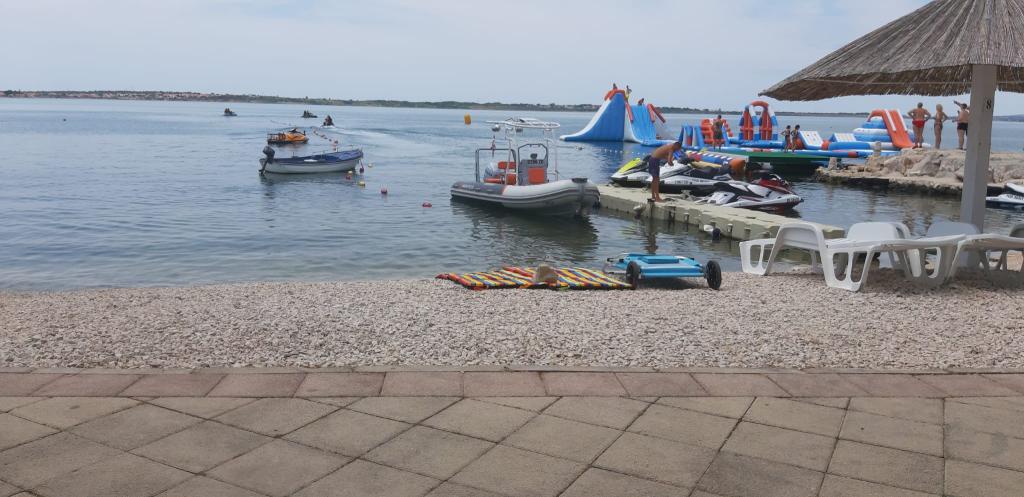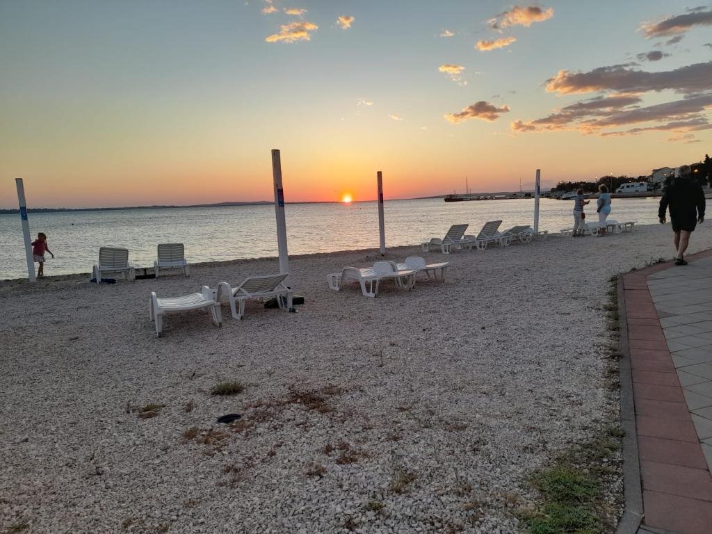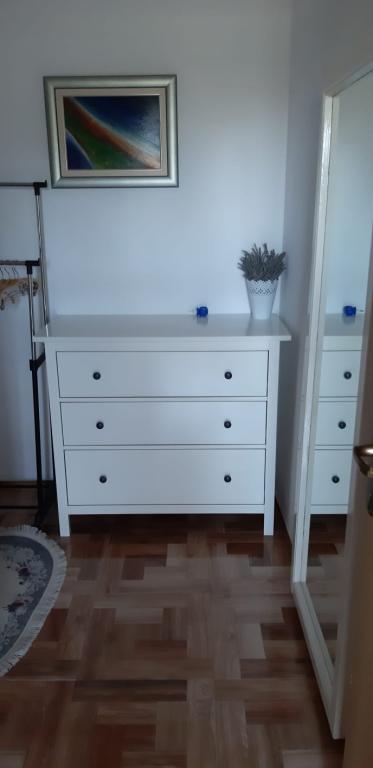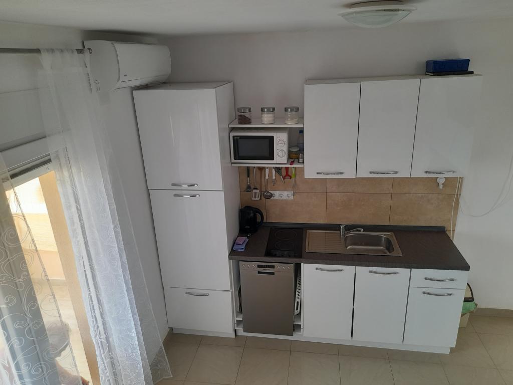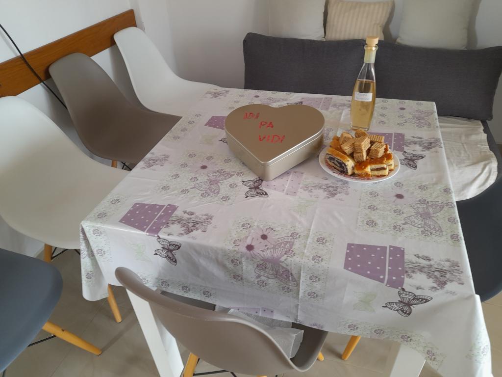 Minden vendéget szívesen látunk, üdvözlőitallal és kávéval fogadjuk őket. Különösen kedvező árakat kínálunk minden vendégünknek, akik szeptemberben igénybe veszik az apartmant. Ha egy kevesebb tagú család úgy dönt, hogy igénybe veszi az apartmant, akkor megegyezünk az apartmanhasználat árában. Az udvar grillezővel és kültéri napelemes zuhanyzóval mindenki számára elérhető. Mivel az apartman zsákutcában található, az udvar ideális a gyermekek játékához. Az apartman árai májusban és szeptemberben kedvezőbbek. Mindenben megegyezünk. Az apartman közelében szupermarketek, piac, pékség, hentesüzlet, halbolt és ATM-ek találhatók.