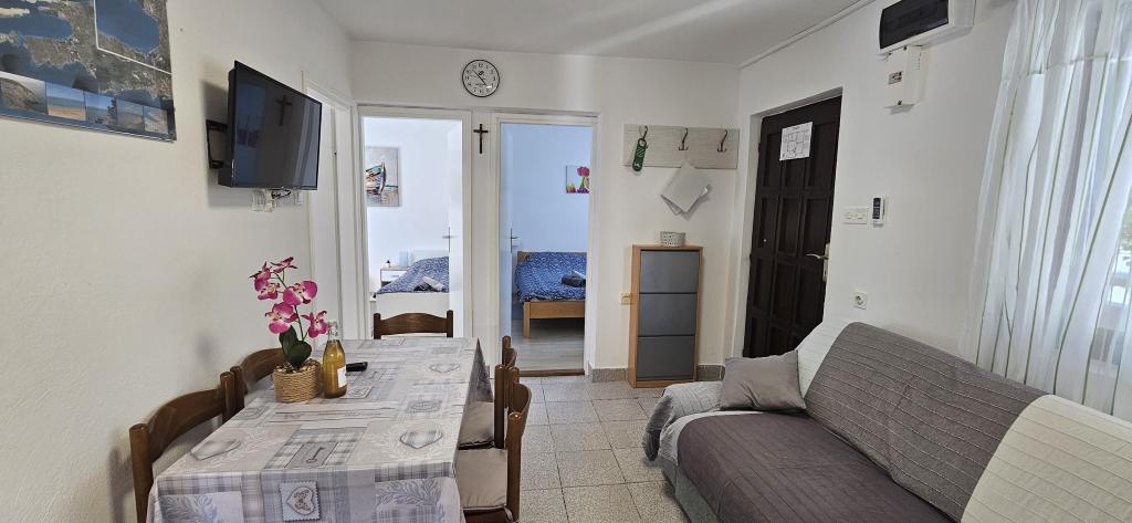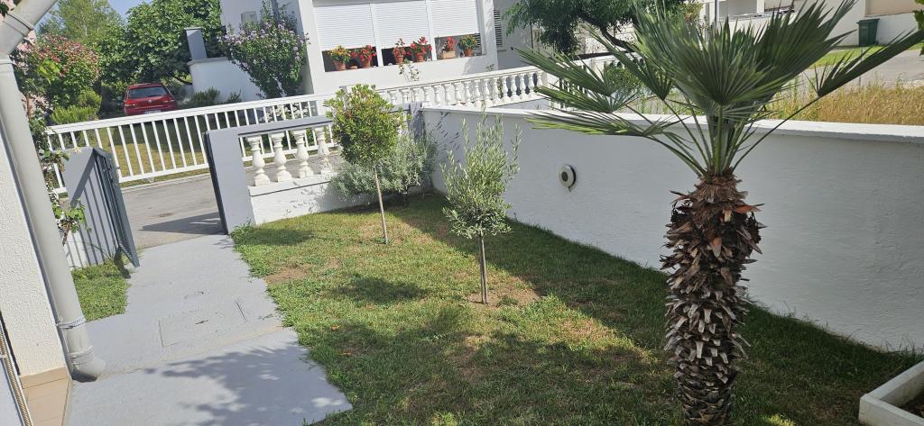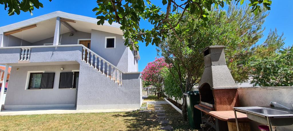 5 fős apartman a ház földszintjén Vrsi Zukve községben külön bejárattal és terasszal. Az 56 m2-es apartman a következőkből áll: 3 hálószoba (1. szoba: nagy franciaágy, négyszárnyú gardrób, kiságy; 2. szoba: két egyszemélyes ágy, dupla szekrény, íróasztal; 3. szoba: egyszemélyes ágy, gardrób), nappali 6 személyes asztal, ülőgarnitúra és LED TV, új konyha beépített gépekkel (főzőlap, sütő, mosogatógép), kombinált hűtő-fagyasztó, mikrohullámú sütő, vízforraló, kenyérpirító; új fürdőszoba zuhanyzóval és szabadtéri fedett terasz asztallal és székekkel természetes árnyékban. A ház 380 m2-es telken található, csendes, zöldövezetben, forgalomtól távol. Parkolóhely az árnyékban és grill az udvarban. A kültéri zuhanyzó és az udvar használata. A homokos strand távolsága 450 m. WiFi elérhető